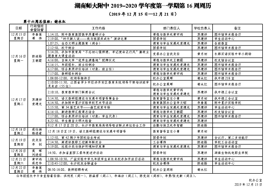 新闻中心 附中新闻 通知公告 最新动态 教育视点 集团学校新闻联播 媒体聚焦 工作安排 微信附中 2019-2020学年度第一学期第16周周历 发布:系统管理员 来源:未知 日期:2019-12-16 人气:分享到: 上一篇:2019-2020学年度第一学期第15周周历 下一篇:2019-2020学年度第一学期第17周周历 通知公告 更多 关于做好2025年事业单位工作人员 湖南省教育科学规划办《关于做好 关于做好2025年度全国教育科学规 五一假期安全提醒 2025年劳动节放假通知 关于做好政工专业知识考试工作的 最新动态 更多