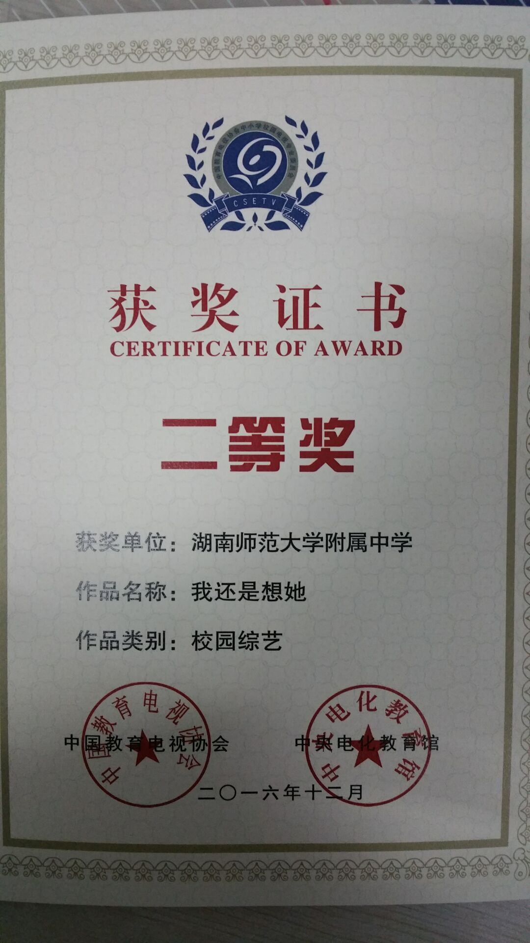 新闻中心 附中新闻 通知公告 最新动态 教育视点 集团学校新闻联播 媒体聚焦 工作安排 微信附中 我校学生电视台作品在全国中小学校园影视评比中获奖 发布:校办公室 来源:学生发展处 日期:2016-12-08 人气:分享到: 12月3日,第十三届中国中小学校园影视评比颁奖晚会在江苏省徐州市音乐厅举行,我校学生电视台报送两部作品参加评比,获得1个一等奖,1个二等奖。学生电视台指导老师谢武龙被评为校园影视先进工作者。 全国中小学校园影视评比是由中国教育电视协会、中国中小学校园电视专业委员会和中央电教馆联合举办的影视评比活动,旨在推动中小学校园影视的成长,经过十三年的发展,已经成为中小学校园影视的“奥斯卡奖”。 这是我校连续第7年参加此项比赛,迄今为止,共获得金奖(一等奖)共23个,银奖(二等奖)19个,铜奖(三等奖)1个,金犊奖提名奖7个,金犊奖1个。 上一篇:广州市黄埔区教育集团化考察团来校考察交流 下一篇:广东邝维煜纪念中学德育考察团来校考察交流 通知公告 更多 2025年劳动节放假通知 关于做好政工专业知识考试工作的 2026年多伦多大学士嘉堡校区绿色 2025年清明节放假通知 湖南师范大学附属中学2025年公开 湖南省教育厅关于做好湖南省教育 最新动态 更多