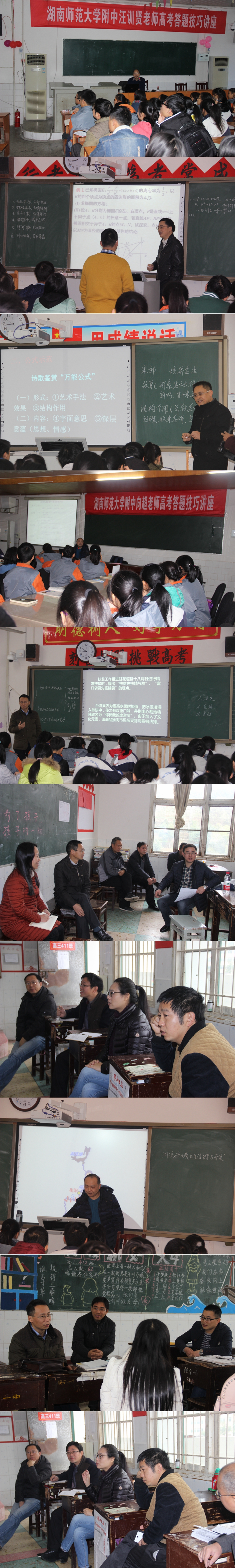 新闻中心 附中新闻 通知公告 最新动态 教育视点 集团学校新闻联播 媒体附中 工作安排 微信附中 我校教师赴邵阳绥宁县开展送教活动 发布:校办公室 来源:党委办公室 日期:2016-12-12 人气:分享到: 12月2日,我校副校长黄月初、樊希国,校长助理兼湖南广益实验中学校长晏荣贵带领高三年级10名骨干教师出席绥宁县高考工作研讨会,开展送教活动。绥宁县一中、二中近200名教师参加了研讨活动。 研讨活动中,我校教师进行了示范课教学展示,分学科与绥宁县一中、二中高三教师交流了备考心得、备考经验和备考技巧。生物特级教师、学校学术委员会主任、高考阅卷质检组组长汪训贤和地理教研组长、高考阅卷核心组成员向超还分别为绥宁县一中高三学生做了高考答题指导专题报告。 (供稿人 叶越冬) 上一篇:广东顺德华侨中学领导、老师来校访问交流 下一篇:学校领导赴绥宁县关峡苗族乡插柳村开展“一进二访”活动 通知公告 更多 关于征集湖南师大附中“十五五” 湖南师大附中2026年教师招聘(第 湖南师大附中2025年教育教学成果 湖南师范大学附属中学2025年零星 关于举办第40届校园文化艺术节的 湖南师范大学附属中学2026年教师 最新动态 更多
