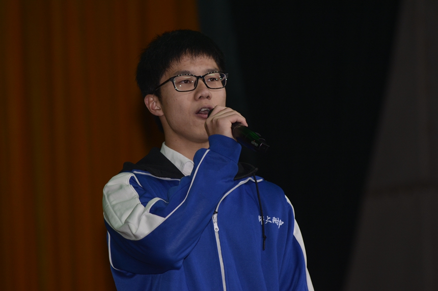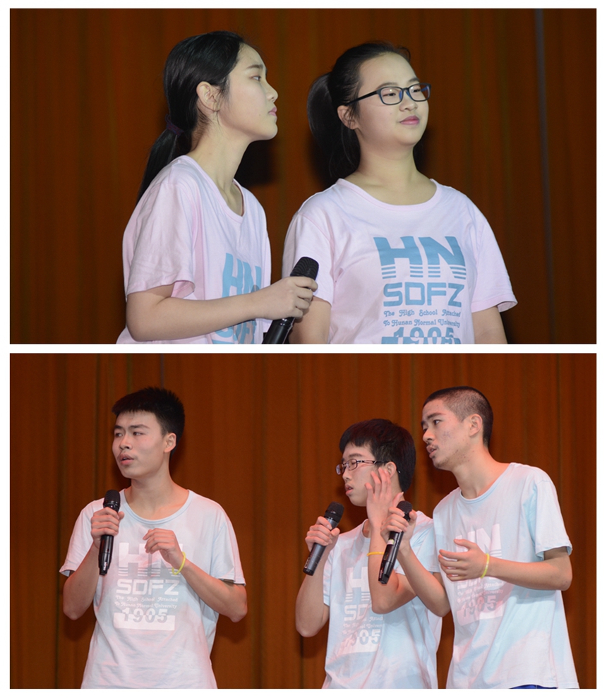 七点整,比赛正式开始。音乐专业生们生动的开场歌舞将全场气氛点燃。随后,高三年级20个班的学生代表们逐一进行了精彩的展演。整场节目内容丰富,形式多样。1411、1407、1404、1410、1420和1412班同学们的节目活泼有趣、青春洋溢,展现了附中学子开朗大方的良好形象。1409、1403、1416、1418、1406、1413、1415、1419和1417班同学们的歌声情感充沛、优美动听,还加入了自己的改编,展现出附中学子多才多艺、素质全面。1414、1401、1402和1408班同学们的节目表达了对即将到来的离别之情,把对同学们的不舍与对老师的感激完美地融入了演唱,展现了附中师生真挚而美好的情谊。