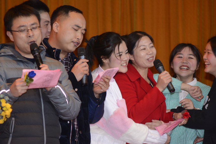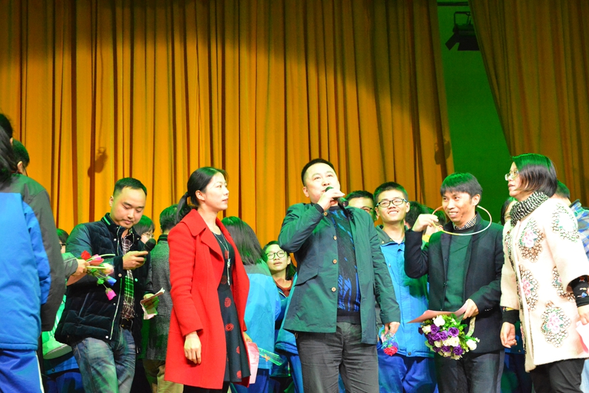 除了学生们精心准备的表演,李钊老师精彩的献唱赢得了满堂喝彩。最后各班班主任和年级组长李勇老师的精彩合唱更是将全场气氛推向高潮。观众们纷纷上台献花并拥抱老师,气氛融洽而温馨。