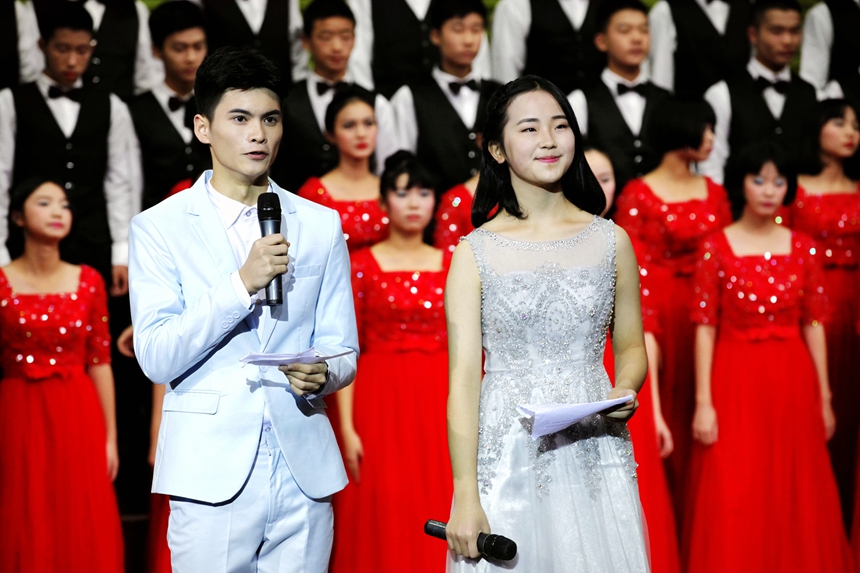 压轴节目--家长合唱团的精彩表演艳惊四座,给了在场师生惊喜和享受。最后,学生发展处郭在时主任宣布了本次比赛的结果,高一年级组长贺仁亮老师高度评价了高一同学们的优秀表现。