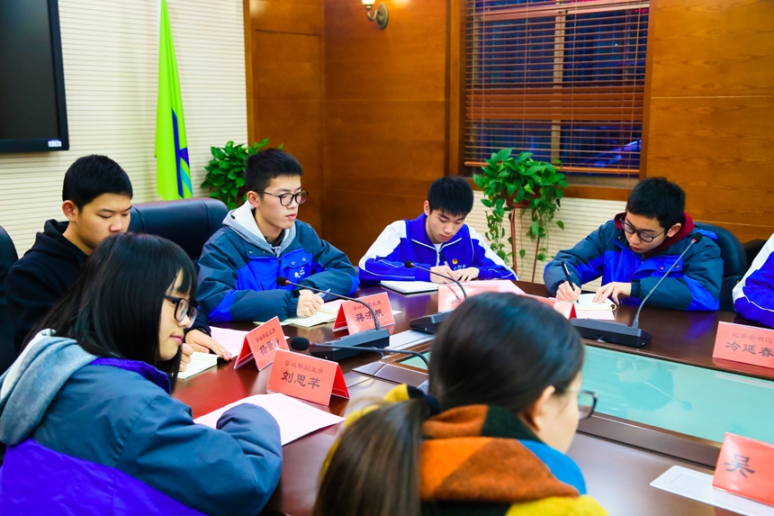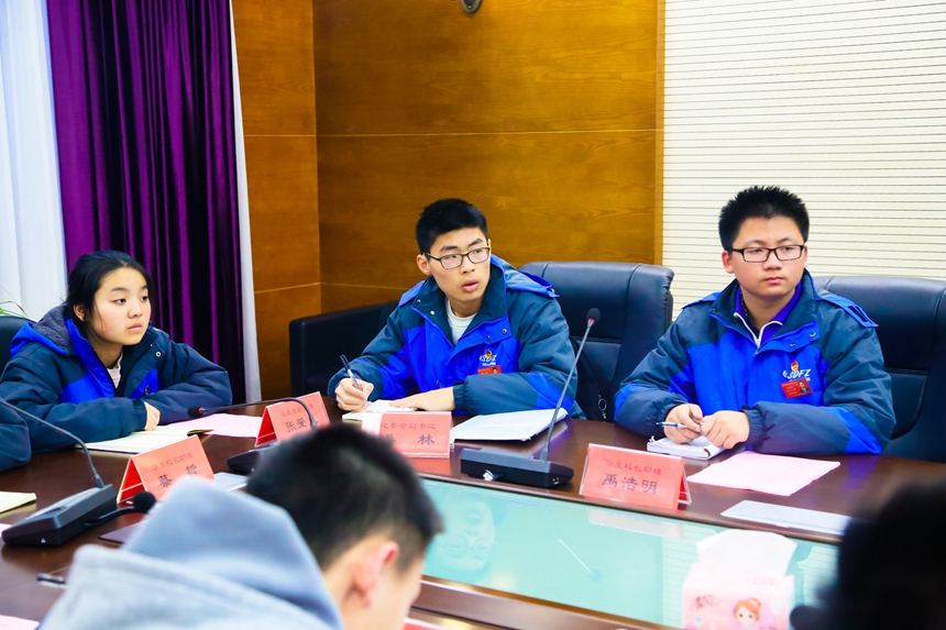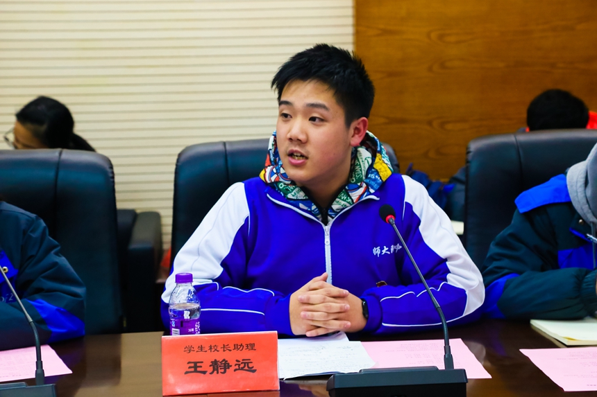 本次座谈会围绕“附中应培养什么样的学生”这一主题展开,同学们结合我校学生培养目标:培养“行为文明、处事理性”的合格公民;培养“素质全面、个性彰显”的具有附中特质的学生;培养“高素质、创新型、敢担当”的学生领袖各抒己见,每一位代表都结合自己的调研结果,搜集到的群众意见积极发言,谢永红、陈迪勋也不时参与到学生们的发言中,了解细节,并深入讨论,会议气氛热烈、民主。有的同学从宏观方面对学校的传统保持和理念坚守提出了建议;有的同学对学校如何从硬件和软件方面保障学生能切实培养素质、发展个性发表了看法;有的同学展示了对学校课程设置和具体实施开展情况的调研结果;有的同学反馈了学生们对校园设施、教学设备的维护、升级的需求;有的同学针对如何通过各种富有成效又符合青年学生时代特性的活动来丰富学生们的生活提出了思考。