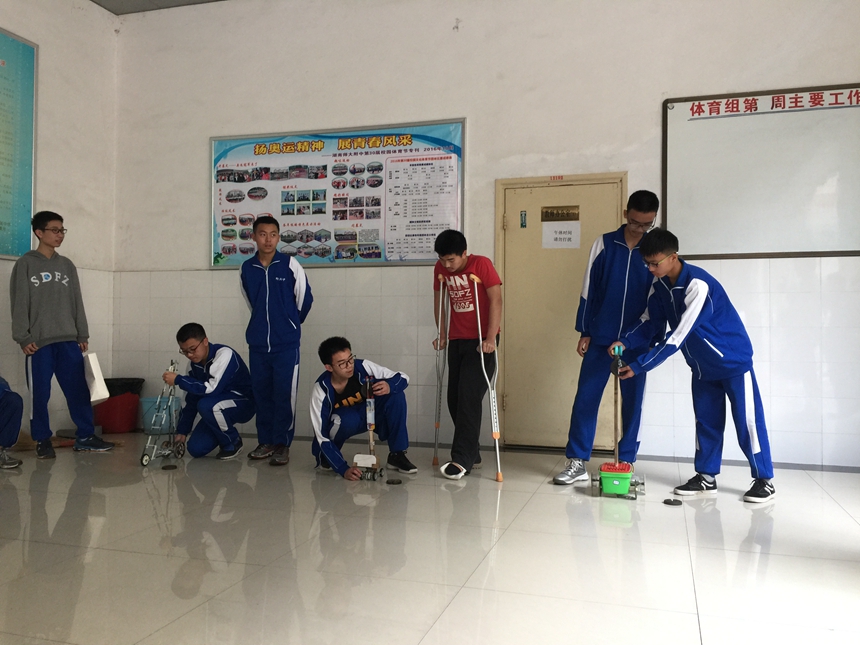 此次竞赛活动邀请了高一年级组长贺仁亮老师,物理教研组彭知文、邓放明、马顺存、王超老师担任评委,参赛班级班主任到现场指导,100余名同学到现场观摩。17个班级代表队参加角逐,各代表队共同设计、制作重力车并操作重力车比赛,整个比赛过程精彩纷呈。 最后,根据参赛车辆的高度、砝码重量、设计理念、制作工艺以及车辆移动的距离等评价指标,评委们做出综合评价,评选出一、二、三等奖。1613班、1609班、1616班、1611班荣获一等奖,1612班、1615班、1604班、1618班、1614班、1603班、1617班、1610班荣获二等奖,1606班、1601班、1607班、1602班、1619班荣获三等奖。