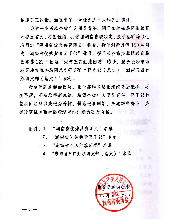 新闻中心 附中新闻 通知公告 最新动态 教育视点 集团学校新闻联播 媒体附中 工作安排 微信附中 校团委被评为2016年度“湖南省五四红旗团委” 发布:校办公室 来源:团委 日期:2017-05-04 人气:分享到: 近日,共青团湖南省委发文《关于表彰“湖南省优秀共青团员”“湖南省优秀共青团干部”“湖南省五四红旗团委”“湖南省五四红旗团支部(总支)”的决定》,我校团委被评为2016年度“湖南省五四红旗团委”,特向全校师生,向广大青年朋友报喜。 上一篇:湖南师大附中诗词大会活动圆满落幕 下一篇:学校召开迎五四青年教师座谈会 通知公告 更多 关于征集湖南师大附中“十五五” 湖南师大附中2026年教师招聘(第 湖南师大附中2025年教育教学成果 湖南师范大学附属中学2025年零星 关于举办第40届校园文化艺术节的 湖南师范大学附属中学2026年教师 最新动态 更多