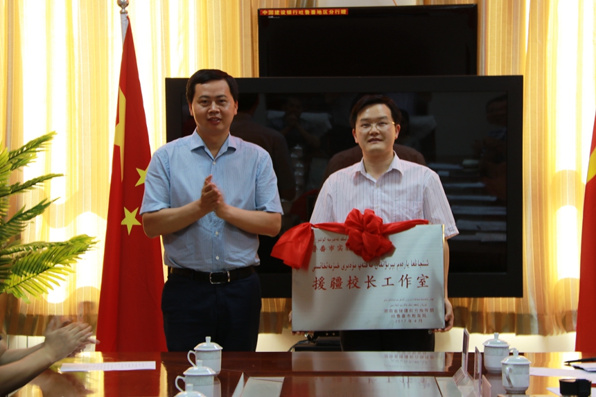 曾少华还和湖南省援疆前方指挥部指挥长、吐鲁番市委副书记颜海林、湖南省援疆前方指挥部副指挥长、吐鲁番市人民政府副市长林德勇、吐鲁番市委组织部副部长龙子晨、吐鲁番市教育局副局长吴晟等一道出席了湖南援疆校长工作室和援疆教师工作室授牌仪式,颜海林和林德勇分别向援疆校长工作室主持人彭荣宏和援疆教师工作室主任陈群辉授牌。