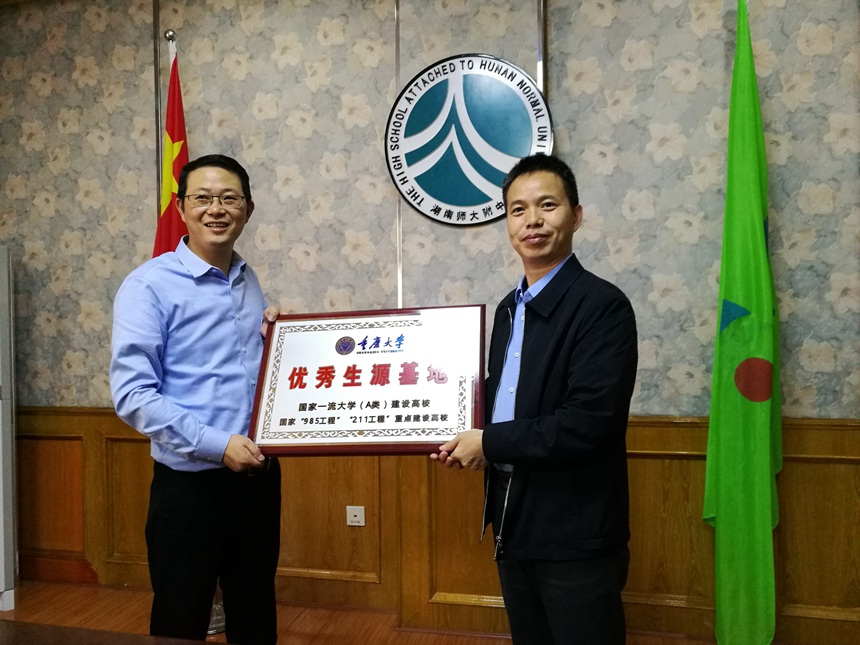 重庆大学授予我校“优秀生源基地”牌