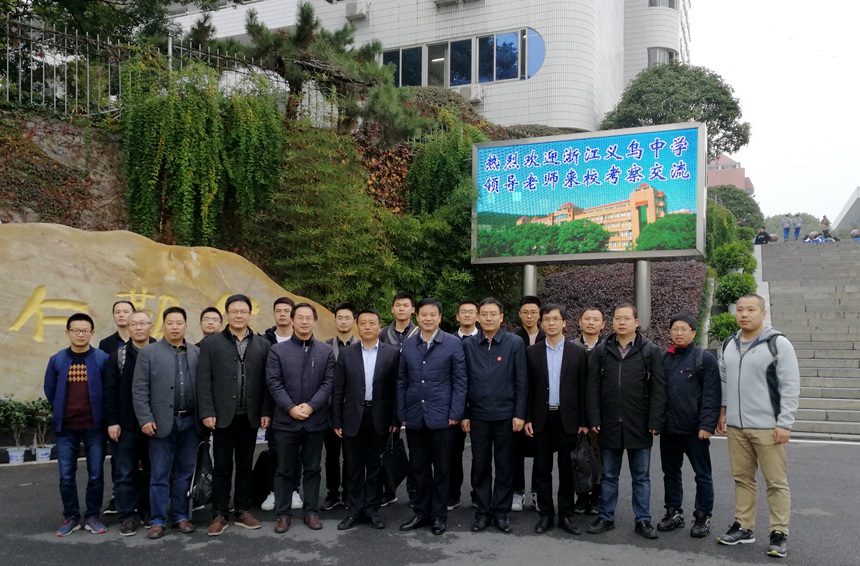 新闻中心 附中新闻 通知公告 最新动态 教育视点 集团学校新闻联播 媒体附中 工作安排 微信附中 浙江省义乌中学领导老师来校考察交流 发布:校办公室 来源:校办公室 日期:2017-11-15 人气:分享到: 11月14日上午,义乌市教育局党委委员、浙江省义乌中学校长朱跃望带领浙江省义乌中学领导老师一行19位来我校考察交流。校长谢永红,副校长樊希国,校长助理、科技创新处主任蔡任湘,办公室主任莫晖热情接待了客人们。 在校史馆会议室,谢永红对来宾们表示欢迎,并介绍了学校教育教学的基本情况和校园文化建设。随后,樊希国,蔡任湘及五大学科奥赛教练与浙江省义乌中学的老师们进行了座谈交流。 (撰稿人:崔李酉子 审稿人:伏炎安) 上一篇: 喜报:管阳菲、金上钧、蒋舒婷三位同学入选地理奥赛国家集训队 下一篇:湖南师范大学2014级本科生实习队汇报课圆满结束 通知公告 更多 关于征集湖南师大附中“十五五” 湖南师大附中2026年教师招聘(第 湖南师大附中2025年教育教学成果 湖南师范大学附属中学2025年零星 关于举办第40届校园文化艺术节的 湖南师范大学附属中学2026年教师 最新动态 更多