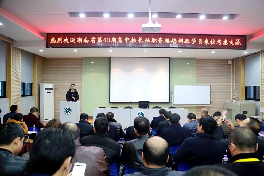 新闻中心 附中新闻 通知公告 最新动态 教育视点 集团学校新闻联播 媒体附中 工作安排 微信附中 湖南省第40期高中校长任职资格培训班学员来校考察交流 发布:校办公室 来源:校办公室 日期:2017-12-15 人气:分享到: 12月13日下午,湖南省第40期高中校长任职资格培训班学员在班主任杨栋的带领下来我校考察交流。党委书记、副校长黄月初亲切接待了客人们。 在图书馆一楼报告厅,黄月初对来宾们表示热烈欢迎,并与来宾们进行了以“合格高中校长应具备的基本素质”的专题讲座及对话交流。 校办公室主任莫晖参与了接待工作。 (撰稿人:崔李酉子 审稿人:伏炎安) 上一篇:长沙市李剑玲德育(班主任)名师工作研讨会在我校顺利开展 下一篇:长沙市蒋雁鸣中学语文名师工作室本年度第三次教研活动在我校成功举办 通知公告 更多 关于征集湖南师大附中“十五五” 湖南师大附中2026年教师招聘(第 湖南师大附中2025年教育教学成果 湖南师范大学附属中学2025年零星 关于举办第40届校园文化艺术节的 湖南师范大学附属中学2026年教师 最新动态 更多