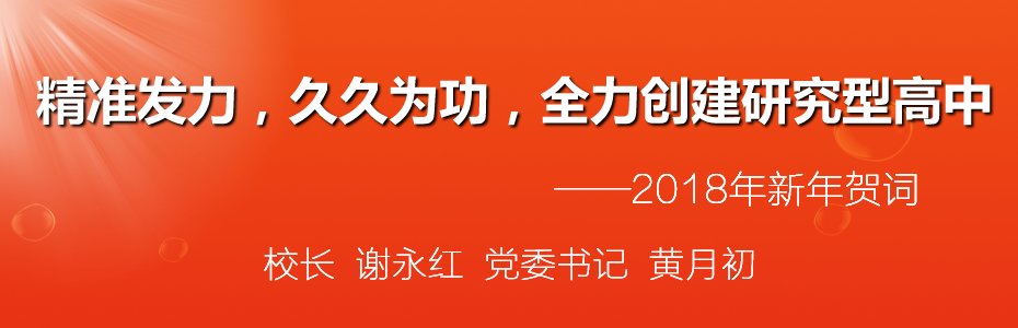 新年新起点,新年新作为。站在2018年起跑线上,在快慰于“轻舟已过万重山”的同时,我们更应有“无限风光在险峰”的清醒和执著。在认真学习并宣传贯彻党的十九大精神、深刻领会并全面落实习近平新时代中国特色社会主义思想的基础上,我们要拥抱新时代、走好新征程、落实新部署、实现新作为。“十三五”乃至其后相当长一段时间里,学校改革发展的重心都是创建研究型高中。“上下同欲者胜”,全体附中人都应凝心聚力,紧紧围绕我们共同的愿景目标精准发力,久久为功,全力创建研究型高中,努力实现优质高中向卓越高中的跨越。
