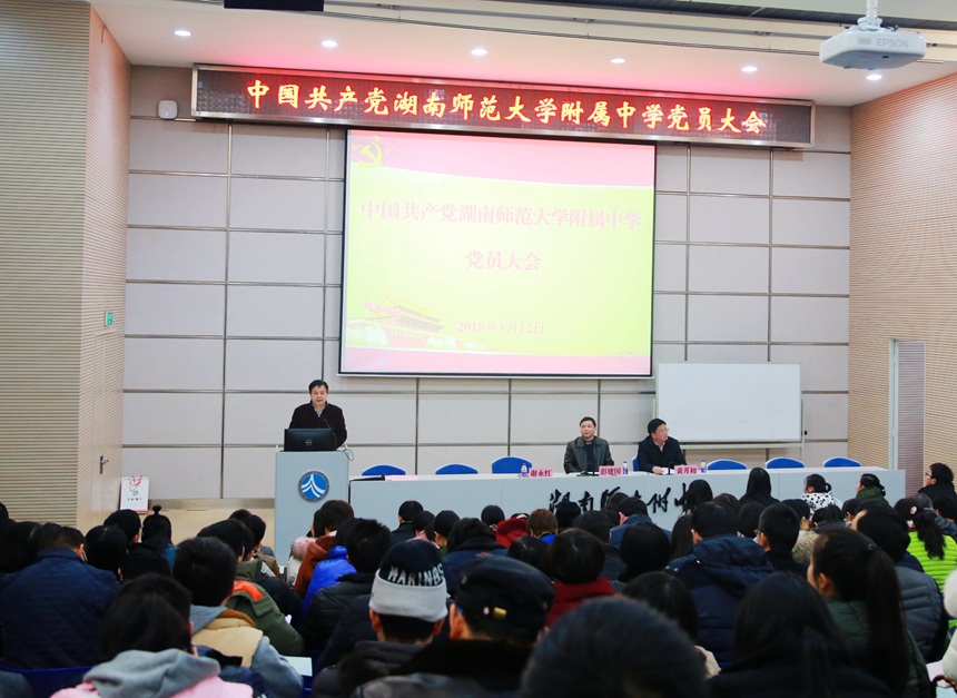 新闻中心 附中新闻 通知公告 最新动态 教育视点 集团学校新闻联播 媒体附中 工作安排 微信附中 学校举行党委换届选举大会 发布:校办公室 来源:党委办公室 日期:2018-01-15 人气:分享到: 1月12日下午,学校党委换届选举大会在会议厅隆重举行。湖南师大党委组织部副部长彭建国、机关一党委秘书王赛波代表师大党委出席会议并指导换届选举工作。会议由校长谢永红主持,校本部、广益实验中学党总支、离退休党支部和外派到各集团校工作的教职工党员共计430余人参加了会议。 会议在庄严的国歌声中拉开帷幕。 彭建国宣读了师大党委关于附中新一届行政领导班子的任命决定和党委组织部同意湖南师大附中召开党员大会的批复,并对附中未来的建设发展寄语祝福和期望,预祝附中党委换届选举工作圆满成功。 党委书记黄月初代表学校党委作工作报告。他以党的十九大精神为指引,开启新时代加强学校党建工作新征程为题,从加强组织建党、思想建党、制度建党、推进精准扶贫、开展文明创建、注重师德建设、指导群团工作、加强宣传工作和统战工作等方面全面总结了上届党委的工作,就党费收支的情况作了大会说明。他在讲话中指出,幸福是奋斗出来的,党的十九大站在新的历史起点上,提出了新时代党的建设总要求,发出了坚定不移全面从严治党、不断提高党的执政能力和领导水平的动员令。他希望全体党员进一步深入学习贯彻党的十九大精神,深刻领会习近平总书记新时代中国特色社会主义思想,不断加强党的思想、组织、作风、反腐倡廉和制度建设,认真落实党中央的重大决策部署和师大党委的工作要求,紧紧围绕学校改革发展目标,牢牢把握服务学校中心工作、加强党员队伍建设两大核心任务,为实现学校“高质量、现代化、研究型、很幸福的卓越高中”的目标而努力奋斗。 随后,大会审议通过了党委工作报告和党费收支情况说明,表决通过了选举办法以及监票人、计票人人员名单。通过无记名投票和现场计票,苏建祥、李春莲、陈迪勋、罗培基、黄月初、彭荣宏、谢永红、廖强、樊希国等九位同志(按姓氏笔画为序)当选为湖南师大附中新一届党委委员。换届选举结果报师大党委审批。 大会在雄壮的国际歌声中胜利闭幕。 上一篇:黄雅芩老师荣获湖南省首届“湖湘优秀班主任”光荣称号 下一篇:我校第26期学达讲坛—“我们的秘密”成功举行 通知公告 更多 关于征集湖南师大附中“十五五” 湖南师大附中2026年教师招聘(第 湖南师大附中2025年教育教学成果 湖南师范大学附属中学2025年零星 关于举办第40届校园文化艺术节的 湖南师范大学附属中学2026年教师 最新动态 更多