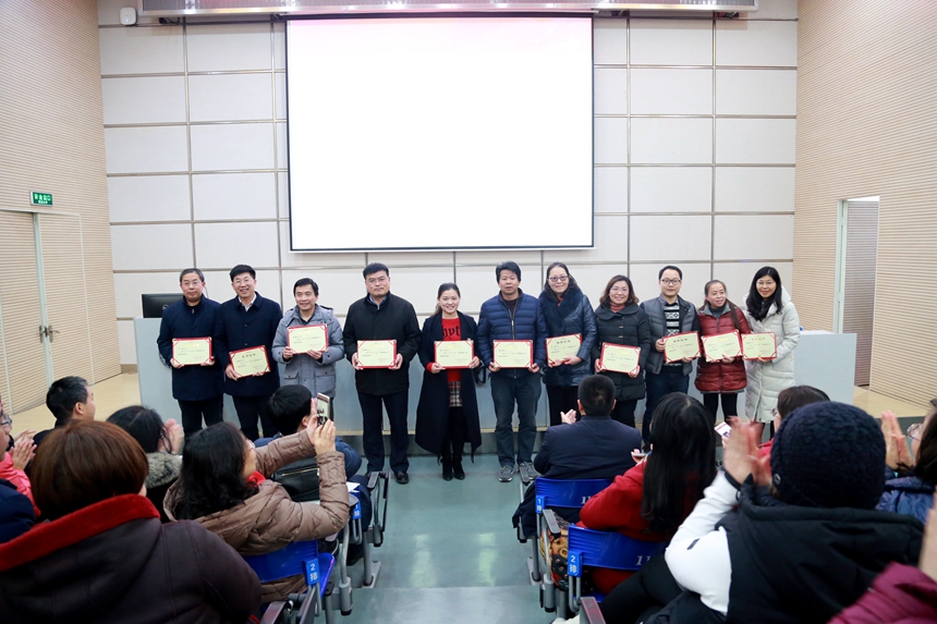 黄月初宣布了学校关于表彰2017年度“文明创建工作突出贡献奖”的决定。随后,全体校领导为23名“文明创建工作突出贡献奖”获得者颁奖。
