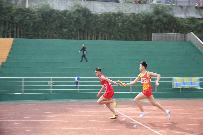 一段精彩的表演后,来自湖南师大附中教育集团各校区的运动员展开激烈角逐。各校区运动健儿在跨栏、跳远、跳高、投铅球、掷铁饼、400米接力赛等运动项目中各展风采。现场老师和同学们的加油声、欢呼声、鼓掌声和欢笑声响彻比赛现场。