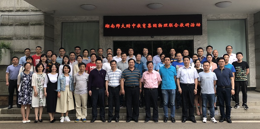 新闻中心 附中新闻 通知公告 最新动态 教育视点 集团学校新闻联播 媒体附中 工作安排 微信附中 高三物理复习展示,新高考研究汇报——湖南师大附中教育集团物理联合教研活动 发布:校办公室 来源:物理教研组 日期:2018-05-07 人气:分享到: 5月3日下午,湖南师大附中教育集团物理联合教研活动在本部科学楼五楼物理数字化录播实验室举行。活动旨在落实校办公会和校学术委员会关于高考复习的指导意见,展示高三物理备课组集体教研成果,展示物理教研组分组研究成果,引领示范,提升集团校物理研究氛围。学校领导黄月初书记、陈迪勋副校长、校长助理集团办康主任,校长助理苏建祥、校长助理蔡任湘、信息中心周大勇主任、课程与教学处领导王朝霞副主任等领导、物理教研组全体成员以及集团校区物理教师50多位老师参加了这次活动。活动分五个环节进行,由教研组长彭知文老师主持。 (撰稿:王超 罗章 审稿:彭知文) 上一篇:我校教职工收看纪念马克思诞辰200周年大会实况直播 下一篇:姊妹校加拿大文思博学校三位教师来校研修交流 通知公告 更多 关于征集湖南师大附中“十五五” 湖南师大附中2026年教师招聘(第 湖南师大附中2025年教育教学成果 湖南师范大学附属中学2025年零星 关于举办第40届校园文化艺术节的 湖南师范大学附属中学2026年教师 最新动态 更多