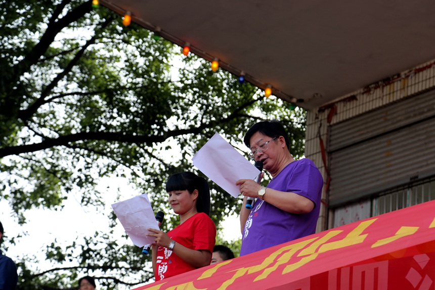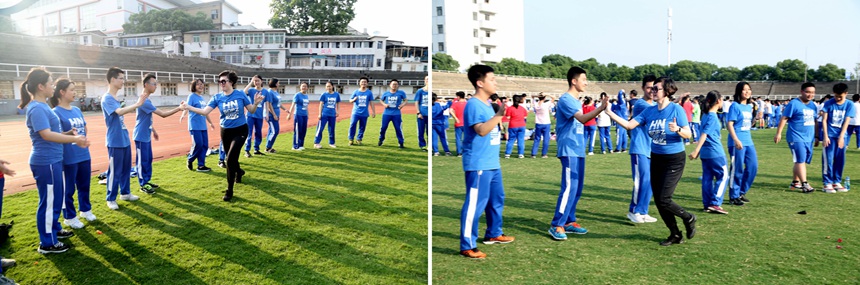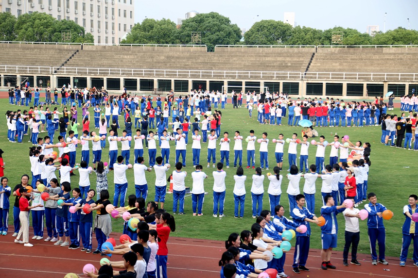 “捏捏你的肩呀,一起来锻炼呀!捶捶你的背呀,就你最有味呀;摸摸你的头呀,头上有点油呀!摸摸你的头呀,今年你最牛呀……”在主持人幽默风趣、热情四射的引导下,同学们为站在自己前方的同学做“阳光SPA”,操场上顿时炸开了锅,嬉戏欢笑声一片。