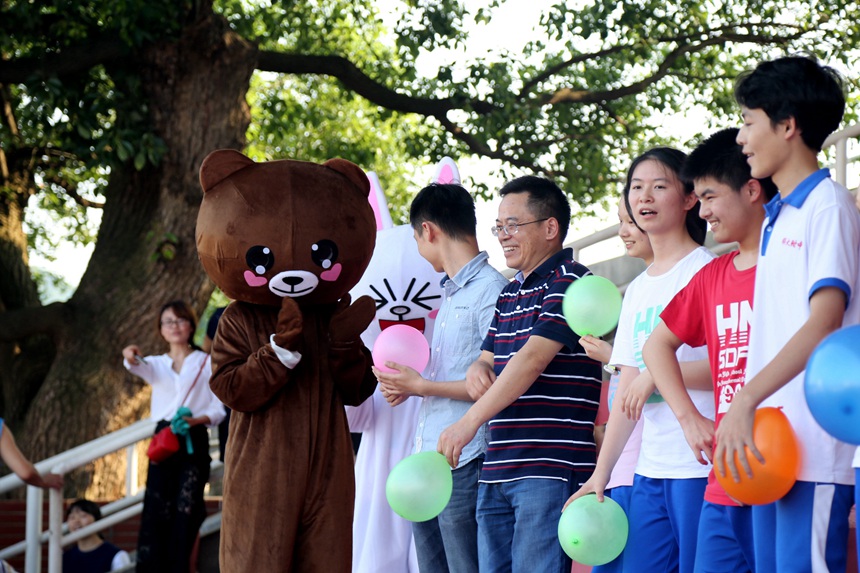 接下来,微笑传递游戏中,游戏中的“输家”在登上主席台准备接受惩罚时,却收获了由谢永红校长亲自颁发的签名祝福本,心情大反转,正如看似不美好的事情,只要拐个角,说不定就会有惊喜。