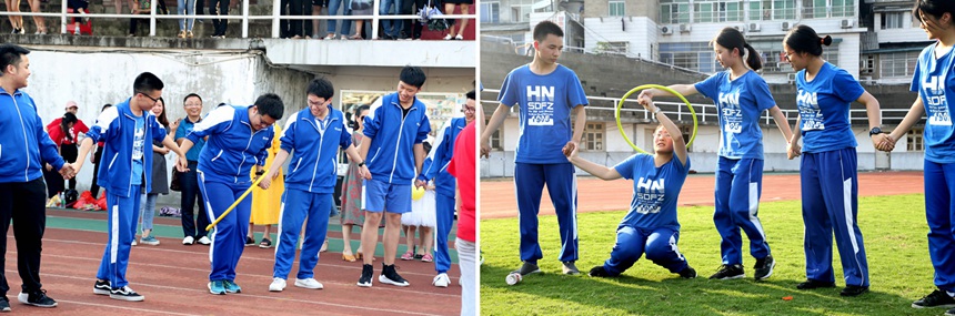活动中最热闹的,是“成功穿越”“鱼跃龙门”环节,孩子们青春洋溢,勠力同心,时而一起将手举起,时而弯腰放低高度,飞速地完成了一个又一个的挑战。
