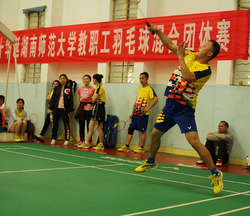 新闻中心 附中新闻 通知公告 最新动态 教育视点 集团学校新闻联播 媒体附中 工作安排 微信附中 我校获湖南师范大学教职工羽毛球混合团体赛第五名 发布:校办公室 来源:工会 日期:2018-06-04 人气:分享到: 为期三天的"弦歌八十载 奋进新时代"湖南师范大学教职工羽毛球混合团体赛圆满结束,此次比赛于6月1日至3日在师大体育馆举行,釆用第一阶段分组循环和第二阶段交叉淘汰赛,共有三十二支代表队参加。我校代表队由副校长兼工会主席陈迪勋担任领队,吕发林任教练,樊希国、李钊,吕发林、秦飞等十三名运动员参加了此次比赛。通过队员的顽强拼搏和团结协作,我校先后战胜了行政一队、旅游学院、音乐学院、后勤集团,惜败于行政二队,最终获得第五名的好成绩!比赛期间,我校校长谢永红、党委书记黄月初、纪检书记李春莲等先后到赛场指导和慰问运动员。 (撰稿人 谭 伟 审稿人 陈迪勋) 上一篇:谢永红在2018届高三学生成人仪式暨毕业典礼上的讲话 下一篇:学校举行庆"六一"教职工子女表彰大会暨亲子游艺活动 通知公告 更多 关于征集湖南师大附中“十五五” 湖南师大附中2026年教师招聘(第 湖南师大附中2025年教育教学成果 湖南师范大学附属中学2025年零星 关于举办第40届校园文化艺术节的 湖南师范大学附属中学2026年教师 最新动态 更多
