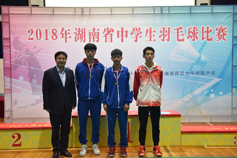 新闻中心 附中新闻 通知公告 最新动态 教育视点 集团学校新闻联播 媒体附中 工作安排 微信附中 2018年湖南中学生羽毛球比赛在我校胜利闭幕 发布:校办公室 来源:学生发展处 日期:2018-10-23 人气:分享到: 2018年10月21日下午,2018年湖南中学生羽毛球比赛在我校体育馆胜利闭幕。湖南省教育厅学生体协羽毛球比赛项目负责人金望明,校长谢永红、党委书记黄月初、副校长陈迪勋参加闭幕式暨颁奖典礼。仪式由学生发展处副主任袁建光主持。 总裁判长田夏宣布获奖运动员名单。男单、女单、男双、女双、混双、男团、女团等七个项目的获奖运动员先后上台领奖,伴随着欢快的乐曲,颁奖嘉宾逐一为运动员颁奖并合影留念。 颁奖仪式结束后,金望明宣布本次比赛闭幕。 至此,由我校承办的为期6天的2018年湖南中学生羽毛球比赛圆满的落下帷幕。 (供稿 袁建光) 上一篇:我校羽毛球队在省中羽赛中勇夺四金四银 下一篇:我校支部书记参加湖南省普通高校党支部书记专题培训 通知公告 更多 关于征集湖南师大附中“十五五” 湖南师大附中2026年教师招聘(第 湖南师大附中2025年教育教学成果 湖南师范大学附属中学2025年零星 关于举办第40届校园文化艺术节的 湖南师范大学附属中学2026年教师 最新动态 更多