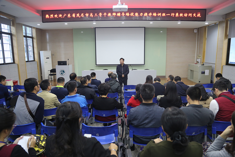 新闻中心 附中新闻 通知公告 最新动态 教育视点 集团学校新闻联播 媒体附中 工作安排 微信附中 广东茂名市高三骨干教师辅导培优能力提升培训班来校考察交流 发布:校办公室 来源:校办公室 日期:2018-10-24 人气:分享到: 10月23日上午,广东省茂名市高三骨干教师辅导培优能力提升培训班一行来我校考察交流。考察队伍由广东省茂名市教育局教研室主任莫尧道带队。校党委书记黄月初、校长助理蔡任湘、校课程与教学处副主任王朝霞热情接待。 黄月初带领考察团参观校园风光,感受学校独到的自然风光与丰厚的文化底蕴。 蔡任湘、王朝霞在校图书馆报告厅就奥赛的竞赛规划、学科辅导培优做法、学校自主招生的规划与做法和高考备考经验等与考察团进行了交流与分享。 上一篇:我校支部书记参加湖南省普通高校党支部书记专题培训 下一篇:青奥会冠军陈龙同学载誉归来 多家媒体争相报道 通知公告 更多 关于征集湖南师大附中“十五五” 湖南师大附中2026年教师招聘(第 湖南师大附中2025年教育教学成果 湖南师范大学附属中学2025年零星 关于举办第40届校园文化艺术节的 湖南师范大学附属中学2026年教师 最新动态 更多
