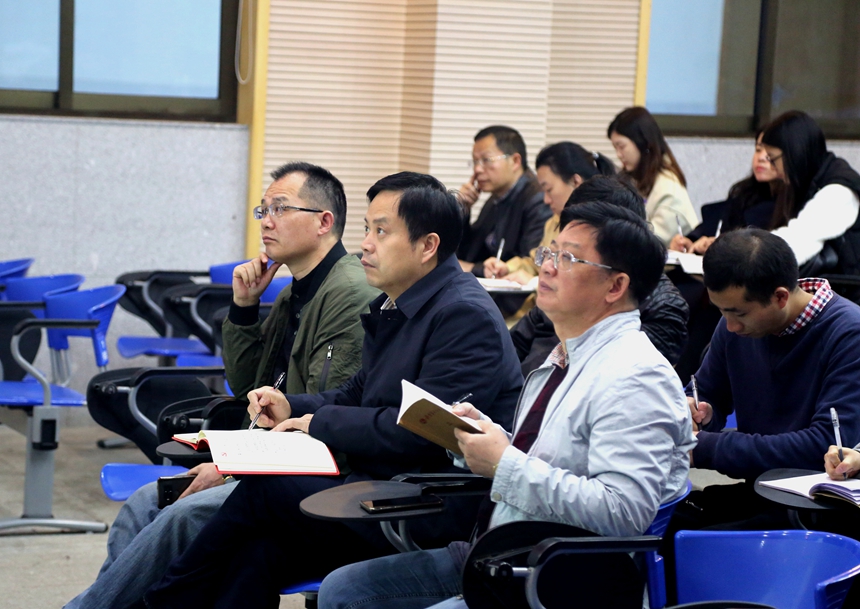 接下来,唐海燕老师作了“办好思想政治理论课关键在教师”的主题报告,从“为什么办好思想政治理论课关键在教师”和“如何发挥教师的关键作用”两个方面进行了深入阐述。随后,黄治清、吴卿、韩秀莲、杨征宇、邓卫国、温宇、蒋平波、游淑雲老师就习总书记提出的“八个统一”作学习分享,唐文皓、杨蓉辉、张婷老师相继交流心得。与会教师纷纷表明要认真学习贯彻重要精神,为培育时代新人贡献力量。