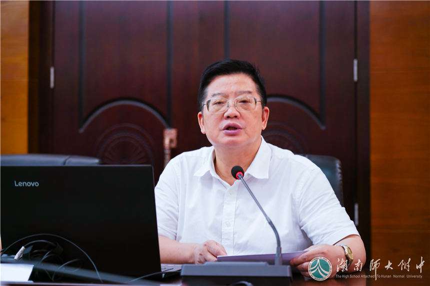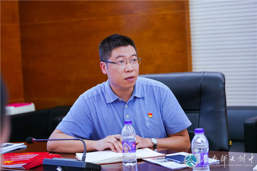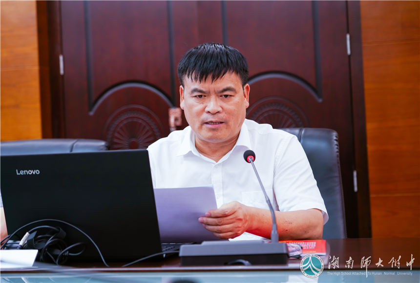 中心发言阶段,党委书记黄月初围绕学习主题,作了题为《学习领会精神, 助力脱贫攻坚》的发言,回答了“为什么要进行脱贫攻坚?脱贫攻坚的主要任务是什么?”等四个问题。他强调脱贫攻坚要完成物质脱贫、精神脱贫、教育脱贫三大任务,指出我校脱贫攻坚成效显著,后期将在防止返贫、加大教育扶贫、宣传扶贫精神、巩固脱贫成果等方面做出进一步的部署。党委委员、纪检书记李春莲以《严格纪律戒尺,护航精准扶贫》为题作中心发言。她从附中微信公众号推出的“附中五年精准扶贫路”说起,结合柳叶湖旅游度假区套取移民资金问题等案例,严明纪律红线,开展预防职务犯罪的警示教育。