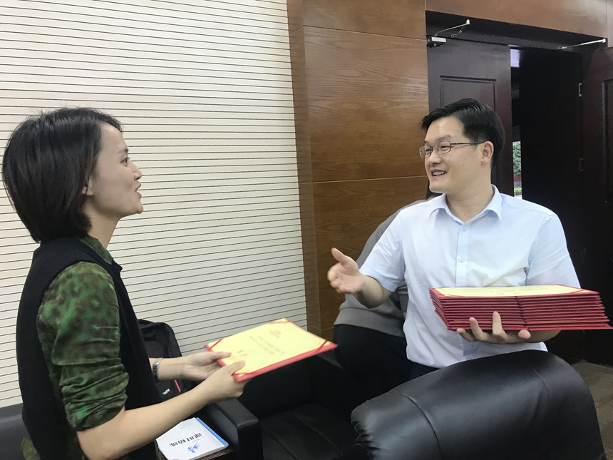 培训结束,校领导们为参训教师颁发培训证书并合影留念。