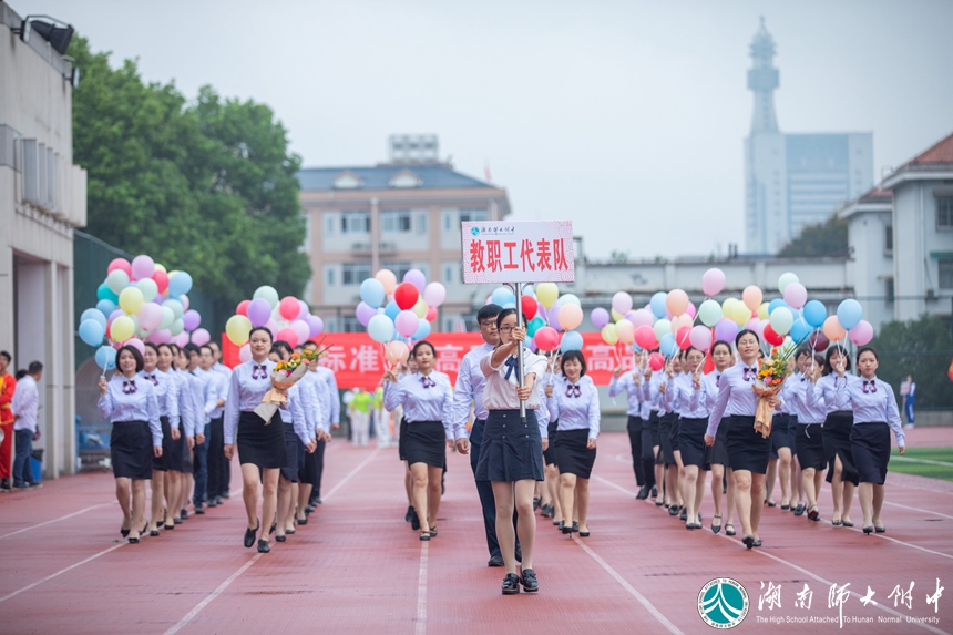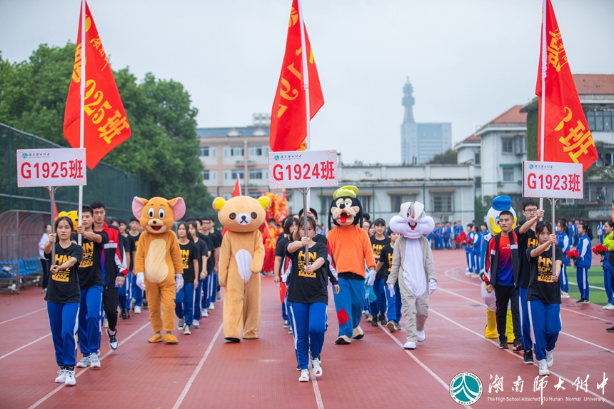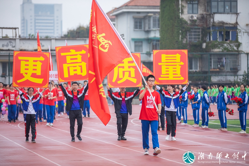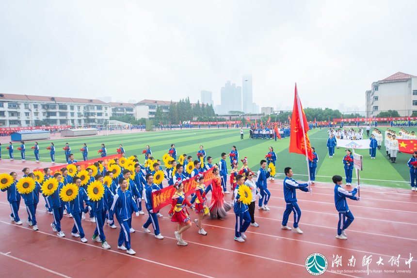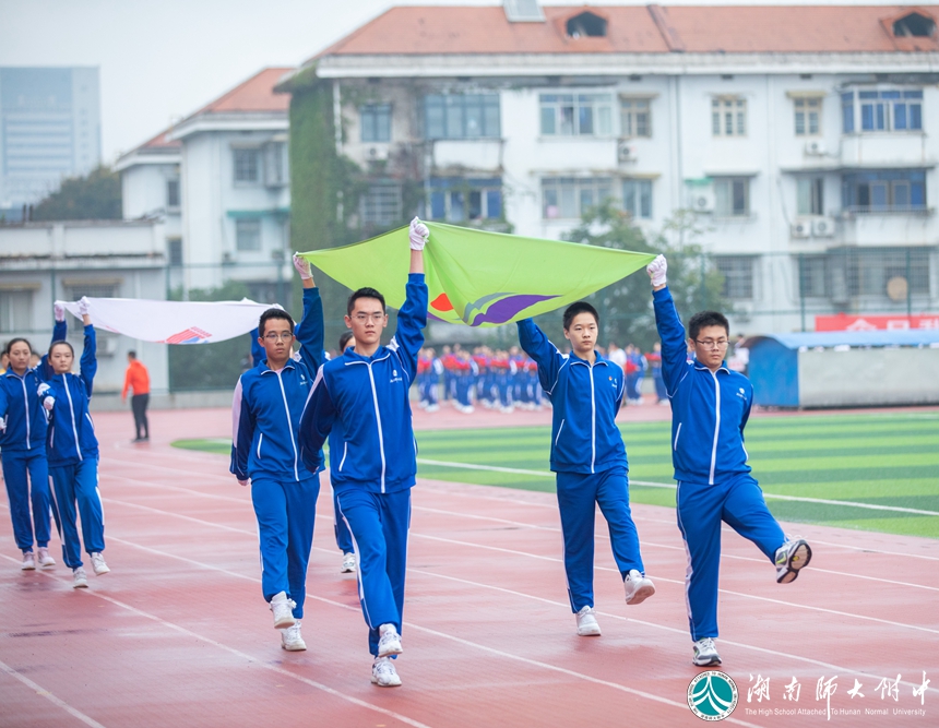 恰同学少年,风华正茂。伴随着激昂的乐曲,各年级代表队、各学生方阵依次入场。别出心裁的班级秀让现场的气氛瞬间热烈起来。“德、智、体、美、劳”全面发展是他们的人生目标——附中学子不光用知识武装头脑,也用锻炼强健体魄!