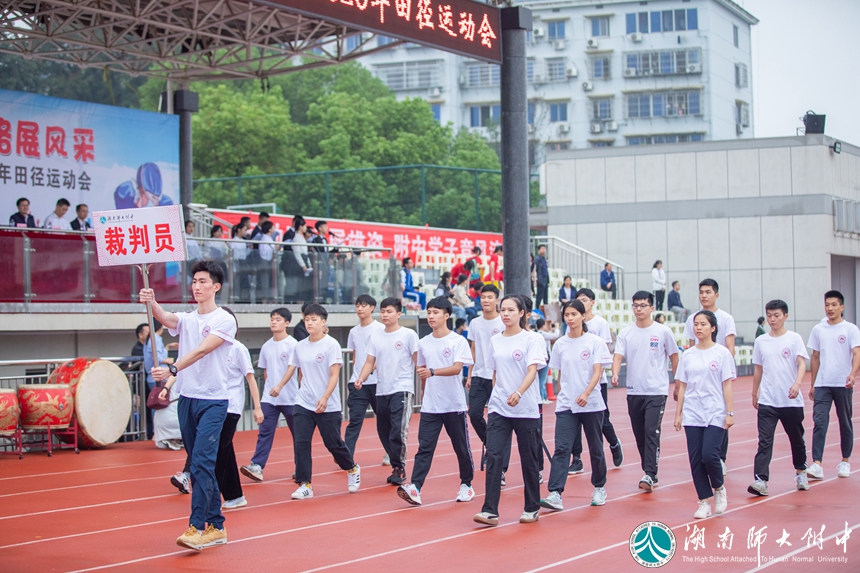 身姿矫健、体态昂扬的裁判员代表队走出了一道亮丽的风景线。他们给我们下达“开始”的命令,更帮助我们维持着比赛的公平公正。他们的认真、细致和耐心,也是体育精神的重要组成部分。