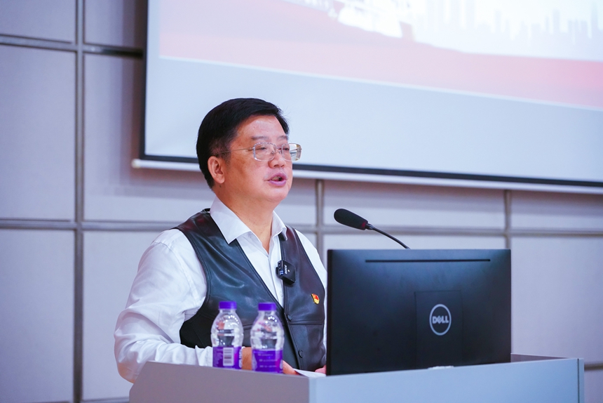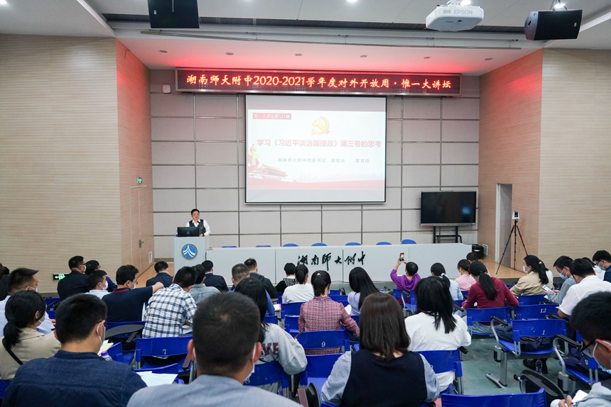 黄月初介绍了《习近平谈治国理政》第三卷的主要内容,分析了逻辑结构,提出了学习要求,重点分享了他的九点学习思考:“突出一个中心、胸怀两个大局、注重三个统一......”内容丰富、系统透彻;最后部分,他结合学校工作实际,提出学校卓越发展的建议:“坚持六个自信不动摇”,深入浅出、入脑入心。整场报告既有理论高度、思想深度,又联系工作、生活实际,有很强的针对性、时效性,给线上线下的老师们上了一堂生动的微党课,也为大家学原著、悟原理、明责任、担使命做了很好的引领和示范作用。
