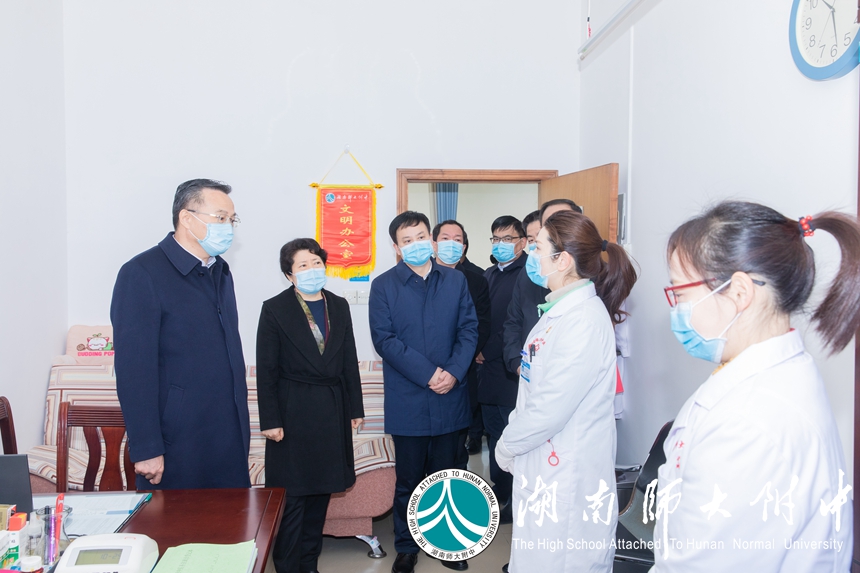 副省长吴桂英,省政府副秘书长彭翔,省卫生健康委员会党组书记、主任陈小春,省财政厅党组成员、副厅长何伟文,长沙市人民政府市长郑建新、副市长刘明理,岳麓区区长周凡、副区长李舜,市教育局副局长孙传贵、缪雅琴等领导陪同督查。