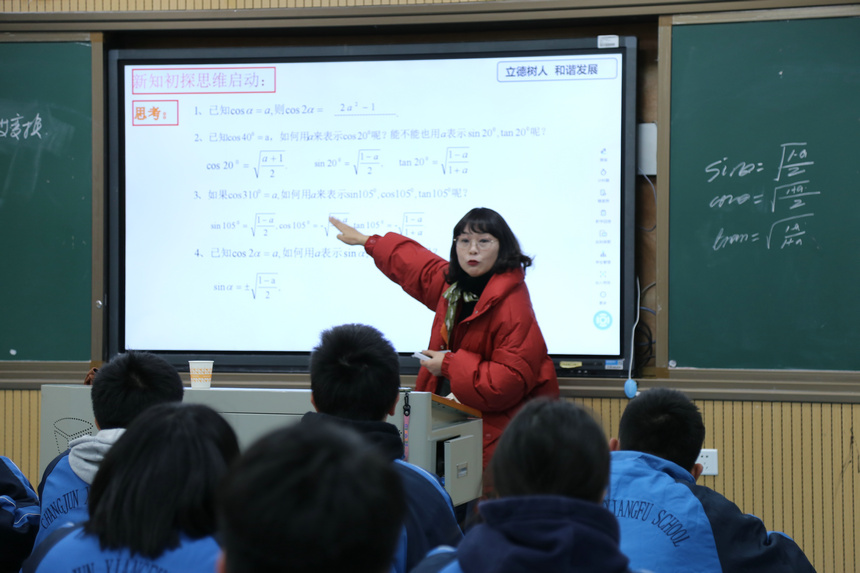 工作室学员望城区二中刘梅老师和长沙市实验中学唐丽老师上研讨课。刘梅老师讲授的课题为《简单的三角恒等变换》,刘老师课前准备充分,教学设计合理,上课饱含激情,富有活力,课堂教学以问题为导向,启发学生思考,充分尊重和欣赏学生,着力发展学生的学科核心素养,为我们展示了一节优秀的数学课。唐丽老师讲授的课题为《匀速圆周运动中的数学模型》,唐老师对新教材内容进行了创造性地处理,从教学情境的创设、数学模型的建立到模型的应用,教学设计层层深入,逐步引导学生从数学的角度去发现问题、分析问题和解决问题,为大家呈现了一堂非常成功的数学建模课。