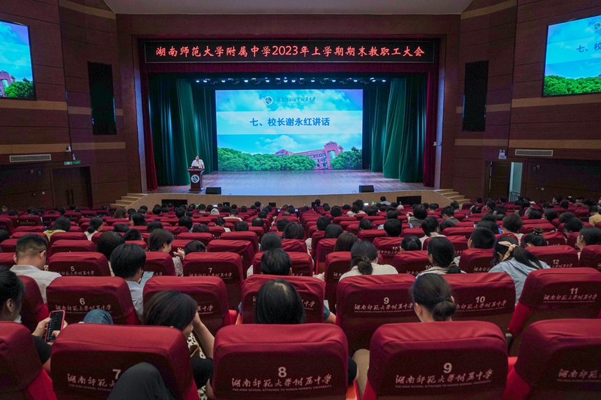 谢永红作总结讲话。他首先对过去一学年度全体教职工的辛勤付出与所取得的辉煌成绩表示感谢和祝贺,然后传达了《关于认真做好2023年上学期结束工作和暑假活动安排的通知》精神。最后他结合前面发言,就一学年来的教育、教学、财务后勤、安全做了总评价。他说:“(教育)‘致广大而尽精微’,总结很有新意,对于教育工作要追求广大,更要精微,要体现创新意识,常抓常新,与时俱进,今年的学工、学农是很成功的尝试”;“(教学)‘成如容易却艰辛’,今年的好成绩来之不易,成功不是轻而易举,是靠团结拼搏、智慧汗水、改革落实得来的,2023届的成功对下一届、今后的每一届都是有益的启发借鉴”;“(后勤财务)‘当家才知柴米贵’,给各位教职工讲得很清楚,勤俭附中、精美附中、文明附中、幸福附中”;“(安全)‘平安二字值千金’,平安是人生最大的财富,超越金钱的价值,作为学校,安全不保何谈教育,每个人都要参与进来”。最后,他对学年度档案归档工作、假期个人安全等方面进行强调,并祝大家度过一个安全、愉快、充实而有意义的暑假。