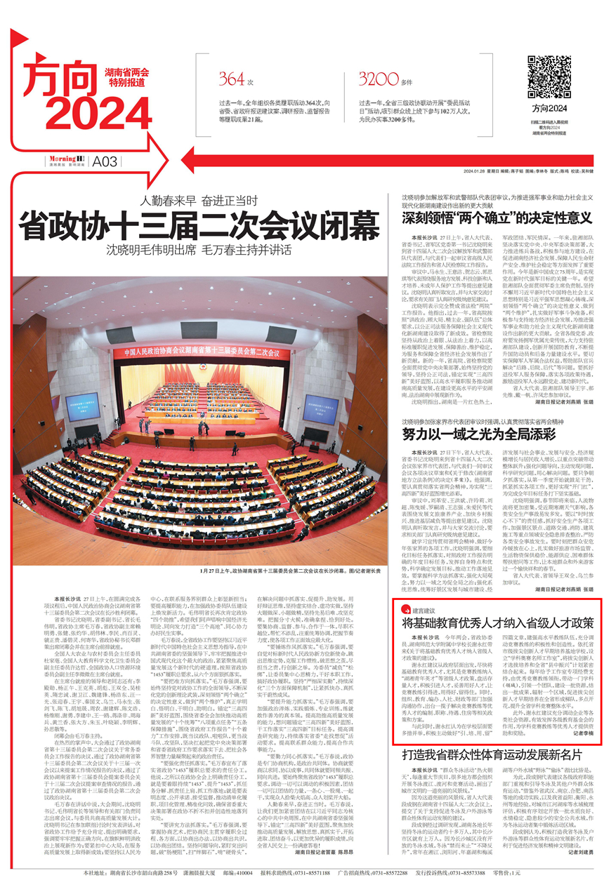 新闻中心 附中新闻 通知公告 最新动态 教育视点 集团学校新闻联播 媒体聚焦 工作安排 微信附中 【潇湘晨报】建言建议|将基础教育优秀人才纳入省级人才政策 发布:管理员 来源:未知 日期:2024-01-28 人气:分享到: 本报长沙讯 今年两会,省政协委员、湖南师范大学附属中学校长谢永红带来《关于将基础教育优秀人才纳入省级人才政策的建议》。 谢永红建议从政府层面出发,尽快将基础教育优秀人才,尤其是竞赛教练纳入“湖湘青年英才”等省级人才政策,盘活存量人才,积极引进人才,妥善用好人才,让竞赛教练引得进,用得好,留得住。同时,组织、教育、编办、人社、财政等部门加强沟通协作,出台一揽子解决竞赛教练等优秀人才的编制、职称、待遇、住房等相关政策和方案。 与此同时,谢永红认为在学校层面要多措并举,积极主动做好“引、培、用、留”四篇文章,建强高水平教练队伍,充分调动竞赛教练的积极性和创造性。依托省市级拔尖创新人才早期培养基地学校,设立“学科奥赛名师工作室”,将拔尖创新人才选拔培养和全省“县中振兴”计划紧密结合起来。每年给予工作室专项经费支持,由优秀竞赛教练领衔,带动一门学科(领域),引领一个团队,建设一批资源,结出一批成果,辐射一个区域,促进拔尖创新人才早期培养在全省形成梯队,多点开花,提升全省学科竞赛整体水平。 此外,谢永红建议充分调动企业等各类社会资源,有效发挥各级教育基金会的作用,为学科竞赛教练等优秀人才提供资助和奖励。 记者李楠 原文链接:http://epaper.xxcb.cn/xxcba/html/2024-01/28/content_3134541.htm 上一篇:学校举行湖南师大附中教育集团第三期“青马班”第四次集中学习 下一篇:学校召开会议宣布干部任免决定 通知公告 更多 湖南师范大学附属中学2024年度废 湖南师范大学附属中学化学实验室 湖南师范大学附属中学出国(境) 关于开展2024年暑假教科研论文评 湖南师范大学附属中学2024年暑假 关于申报“十四五”课题2024年度 最新动态 更多