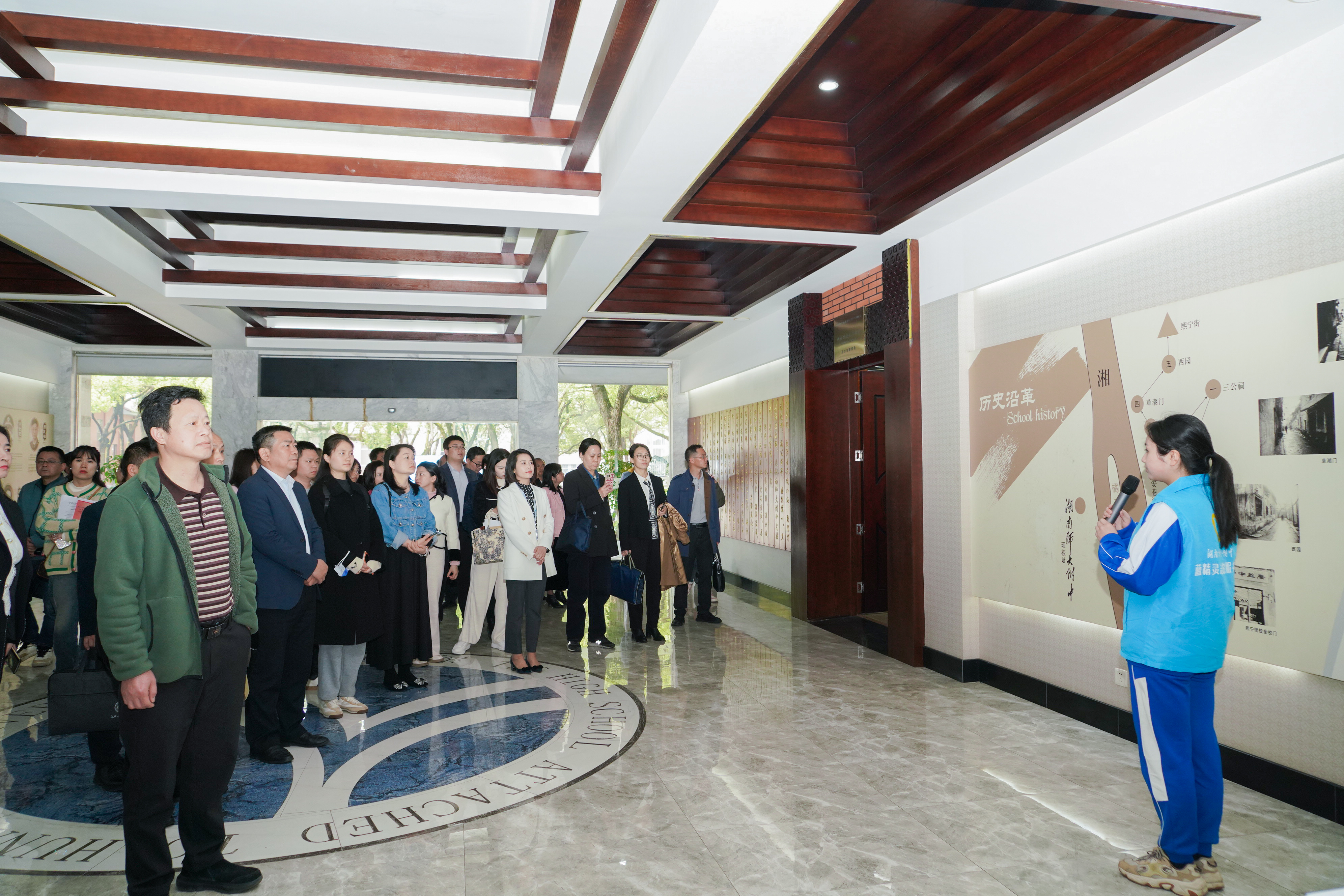 上午会议结束后,与会人员在“蓝精灵”志愿者的带领下参观校园。学校文明校园建设、青少年活动阵地、志愿服务活动令人欣喜。在我校学生、湖南“新时代好少年”罗启成的带领下,观摩人员感受着红色附中校本德育的鲜明特色,惊讶于学校攀登广场攀登碑上密密麻麻的获奖榜,惊艳于拥有11间功能室的学校“心理发展中心”的“护心”研究与实践。我校自2017年获评“第一届全国文明校园”以来,连续六年接受测评复查分数均位列湖南省中小学校第一。建校118年来,我校始终流淌着志存高远、公心至上的血液,引导学生扣好人生第一粒扣子,用家国情怀浸润附中学子的成长。