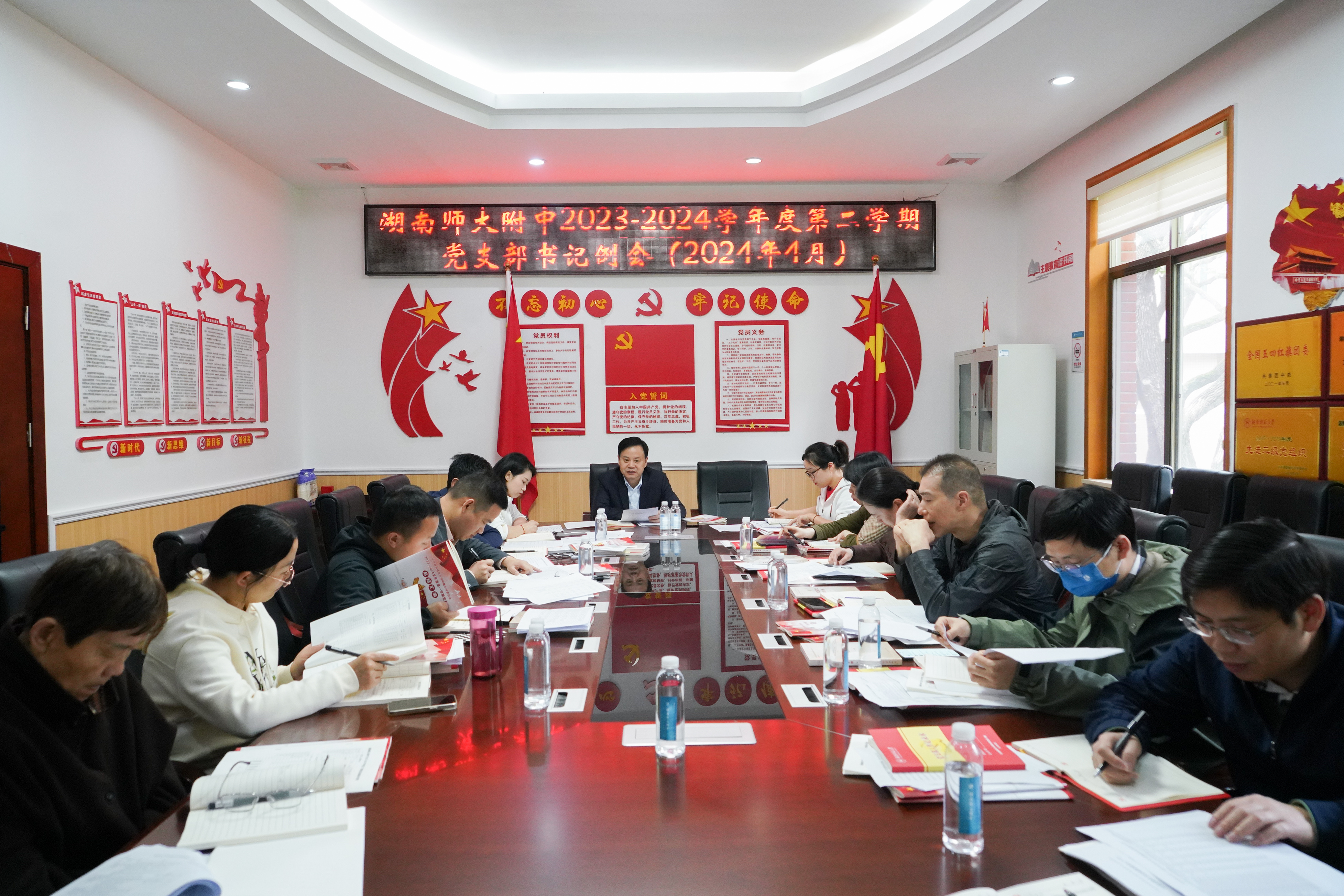 新闻中心 附中新闻 通知公告 最新动态 教育视点 集团学校新闻联播 媒体聚焦 工作安排 微信附中 学校召开党支部书记例会 发布:管理员 来源:未知 日期:2024-04-12 人气:分享到: 4月12日,学校召开党支部书记例会。党委书记谢永红出席。会议由党委办公室副主任鲁荣主持。 会议传达学习了习近平总书记近期重要讲话、重要指示精神和上级重要会议、文件精神,学习了党委书记谢永红2024年党委工作报告。 会议对提升基层党建工作质量、推深做实“一月一课一片一实践”主题党日活动、切实抓好党员发展工作进行了强调,对党费收缴情况进行了通报。各党支部书记对学校进一步提升党建工作质量建言献策。 谢永红强调,要不断加强党支部建设和党支部书记队伍建设,进一步发挥党支部战斗堡垒作用,为推动学校高质量发展提供坚强组织保障。要提站位,着力增强党的政治功能、组织功能;要严规矩,严守纪律规矩,筑牢底线意识;要促融合,推动党建工作与教育教学工作深度融合;要创品牌,持续激活党建创新动能;要做表率,强化走在前意识,争当先锋。谢永红还对下阶段重点工作进行了部署。 (供稿:党委办公室 审稿:吴卿 编辑:文婷) 上一篇:湖南师大附中标本馆正式开馆 下一篇:中国工程院院士、湖南师范大学校长刘仲华来我校走访调研 通知公告 更多 湖南师范大学附属中学2024年度废 湖南师范大学附属中学化学实验室 湖南师范大学附属中学出国(境) 关于开展2024年暑假教科研论文评 湖南师范大学附属中学2024年暑假 关于申报“十四五”课题2024年度 最新动态 更多