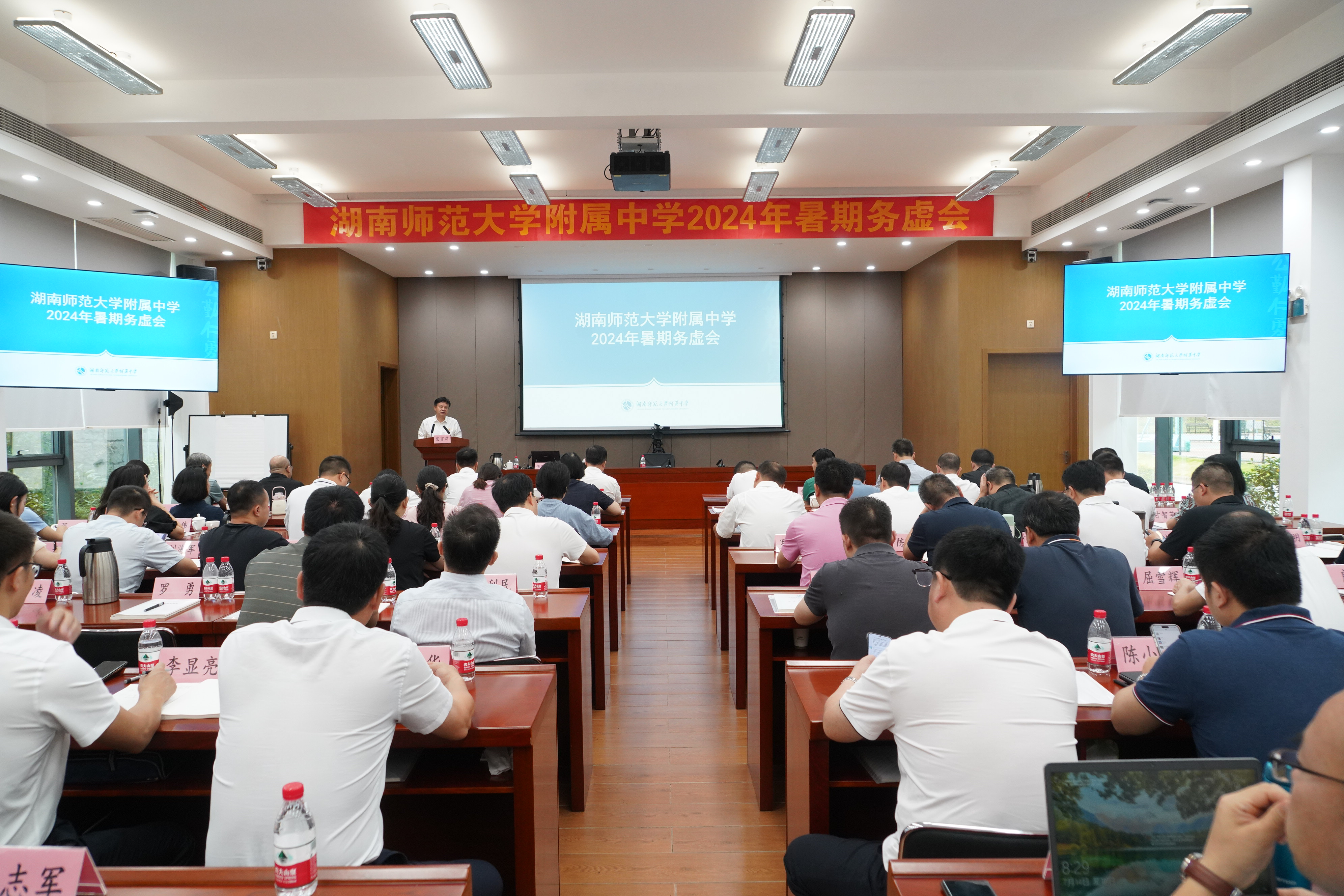 下午,本部高三年级主任陈小虎、本部初三年级主任李艳妮、附中芙蓉校长邓子峻、博才梅溪湖校长黄丽、师大滨江副校长刘娥、附中梅溪湖副校长李勇、附中博才天顶执行校长罗爱斌、华益中学副校长姜义华、附中博才学士校长黄赛、思沁校长熊辉琼结合各自特点就教育质量发展策略进行分享。副校长苏建祥做了《附中及集团教育质量现状及发展趋势》专题报告。他先从目标达成和机制建设两个角度分析了附中教育集团的现状和未来,然后从对标两个指南谈查摆问题和如何进一步研究和完善我们的教育教学及办学方略等。校长黄月初就全天的会议流程及内容做总结。他高度评价了各位发言的同志,然后从教育教学工作的关系角度,教育所涉及的方方面面进行了强调。