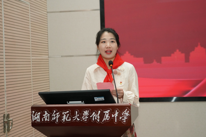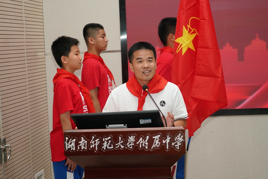 中队辅导员代表严志表达了三点希望,一是希望少先队员们听党话、跟党走,扣好价值引领的第一粒扣子。二是希望少先队员们把爱国,当做立身之本、成才之基。三是希望少先队员们都能赓续革命的奋斗精神。