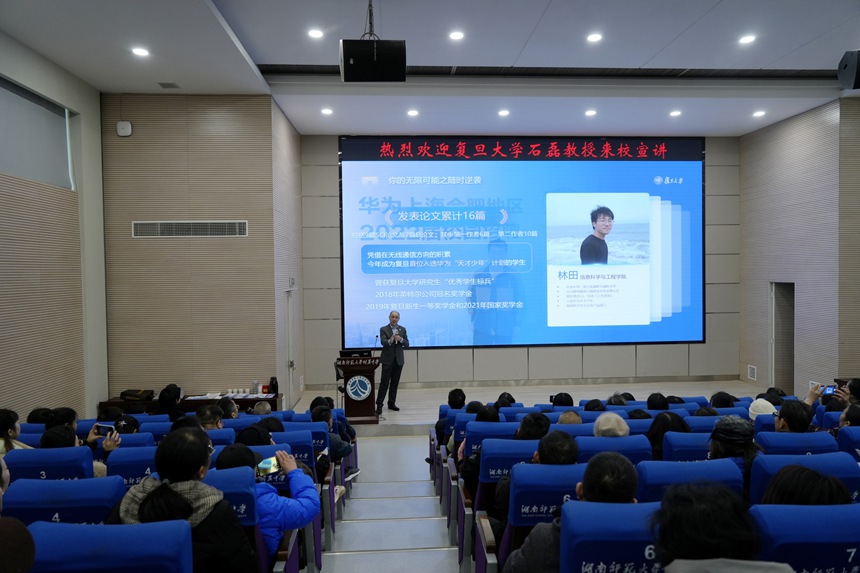 与此同时,在惟一大讲堂,复旦大学招生办主任石磊教授进行了招生宣讲。宣讲面向高三家长,详细介绍了复旦大学的招生政策、专业设置、师资力量以及校园生活等方面的情况,为家长们提供了宝贵的参考信息。