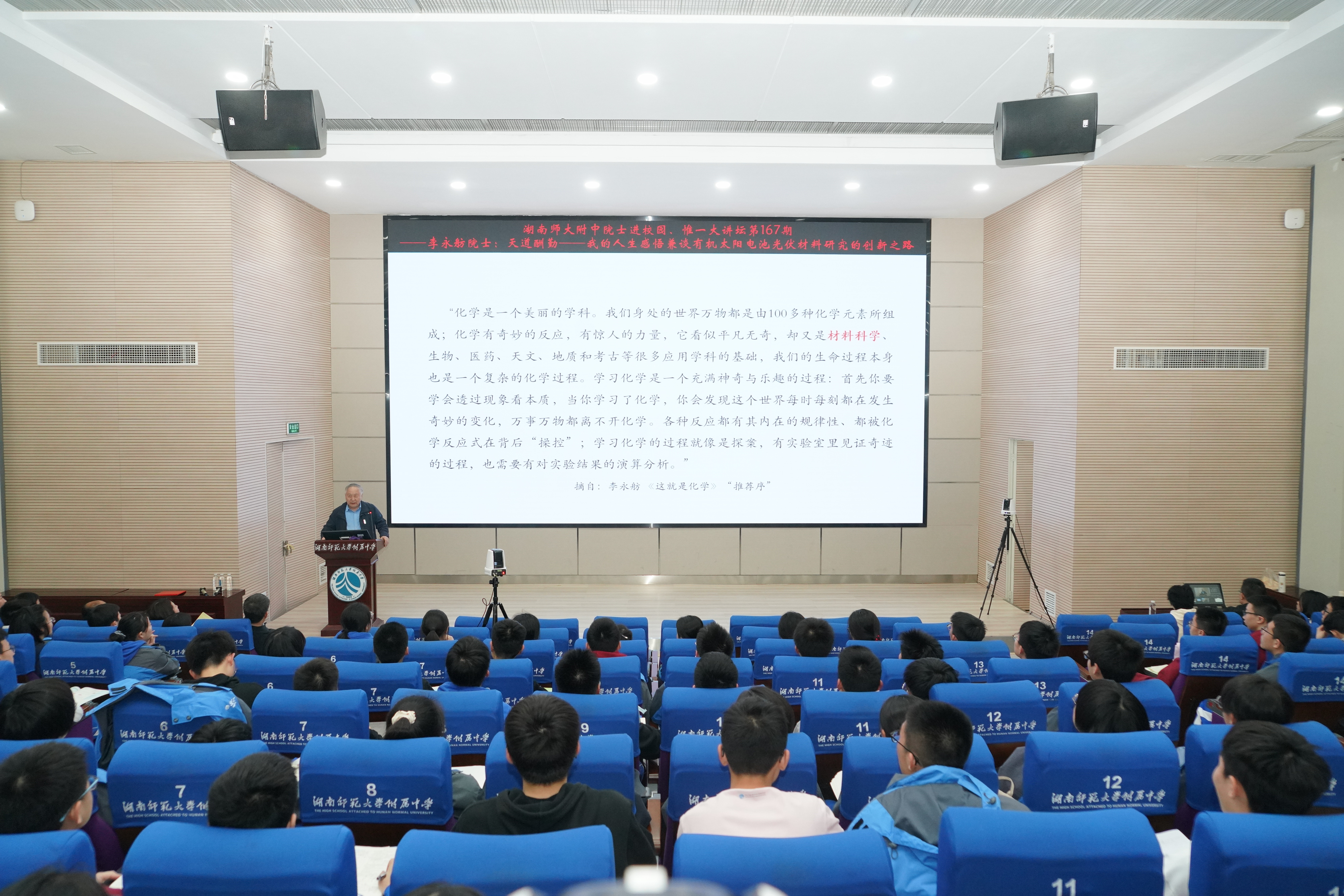 揭秘"化学魔法",李永舫院士点燃湖南师大附中学子青春科学梦