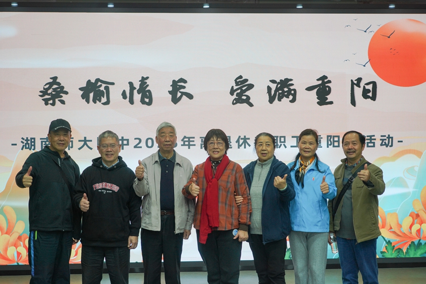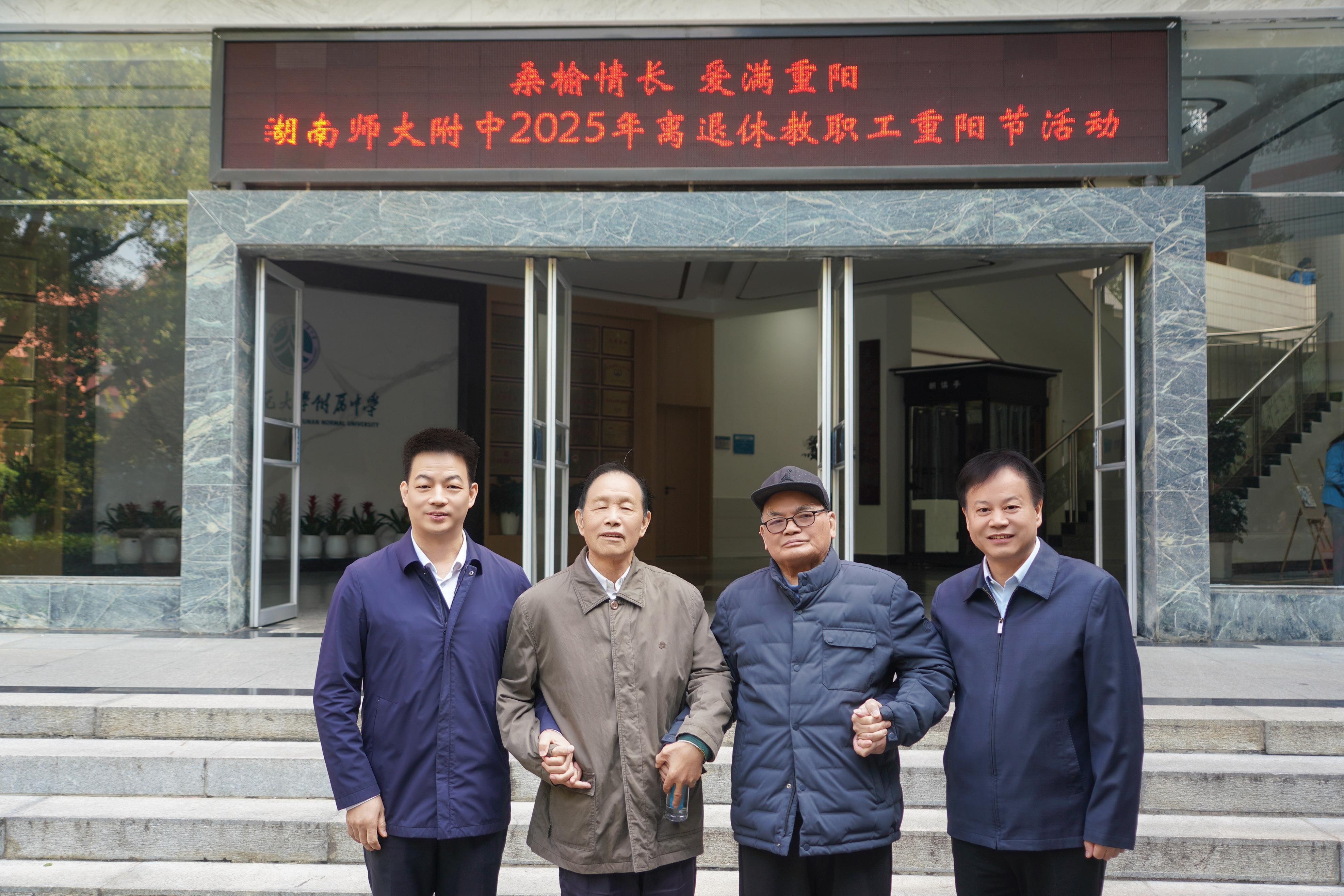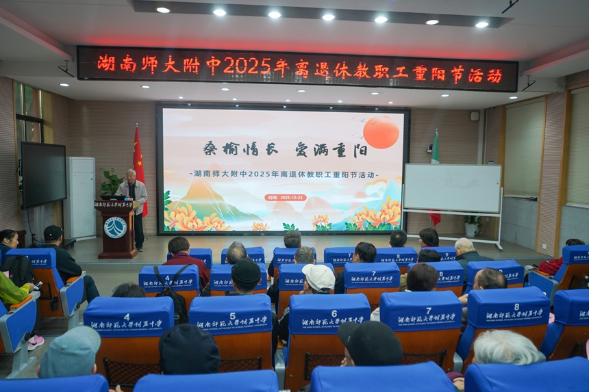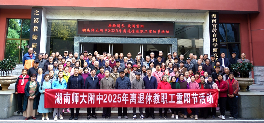 新闻中心 附中新闻 通知公告 最新动态 教育视点 集团学校新闻联播 媒体附中 工作安排 微信附中 学校开展2025年离退休教职工重阳节主题活动 发布:管理员 来源:未知 日期:2025-10-23 人气:分享到: 一年一度的重阳佳节来临之际,为弘扬中华民族尊老、敬老、爱老、助老的传统美德,表达对离退休教职工的关怀与敬意,10月23日,学校开展“桑榆情长 爱满重阳”主题活动,党委书记谢永红、校长苏建祥、副校长兼工会主席廖强出席,150余名离退休老同志参加活动。 廖强代表学校向全体离退休教职工致以节日的诚挚问候和美好祝福。他回顾了老同志们在学校建设与发展历程中付出的辛勤努力与卓越贡献,并特别感谢大家对120周年校庆活动的热情参与和大力支持。他表示,老同志的智慧与经验是学校最宝贵的财富。 在这个崇尚孝亲、敬老、祈福的重阳佳节到来之际,苏建祥校长与在场的离退休老同志们进行了亲切交流。作为新任校长,他动情地分享了自己大学毕业来校29年多的工作与生活点滴,由衷地向各位离退休同志表达了对学校发展的贡献与对个人成长关心的感谢之情。面向未来,苏建祥作了恳切的表态:一是会努力做好传承、团结和创新三篇文章,积极探索“一校两址”办学新模式和拔尖创新人才早期培养新路径,实现学校在高水平办学基础上的稳定与创新发展;二是会高度重视学校离退休工作,珍惜和发挥好离退休同志这一学校的宝贵资源,汇聚成学校发展的强大力量。最后,他提醒离退同志多多保重身体,“要为我们做幸福生活的榜样”,诚挚地表达了美好的祝福。 离退休协会会长蔡卫红代表协会作了上一年度的工作总结报告,回顾了过去一年协会在服务老同志、组织开展活动等方面取得的成果。 合影留念后,老同志们兴致勃勃地前往风景宜人的“小庆农庄”进行休闲交流活动。大家漫步田间,畅叙友情,参与趣味活动,脸上洋溢着幸福的笑容,在轻松愉快的氛围中共度佳节。 这次重阳节主题活动,不仅为离退休教职工提供了欢聚一堂、共话情谊的机会,更体现了学校对老同志们始终如一的尊重与关爱,营造了浓厚的尊老敬老校园文化氛围。 上一篇:我校开展大湘西教育帮扶活动 下一篇:教育部中学校长培训中心、成都市新都区教育局联合考察团来我校交流 通知公告 更多 2026年报刊征订通知 湖南师大附中关于开展2025年教师 湖南师范大学附属中学2025年至2 湖南师大附中关于2025年度中小学 湖南师范大学附属中学大泽湖校区 湖南师范大学附属中学大泽湖校区 最新动态 更多