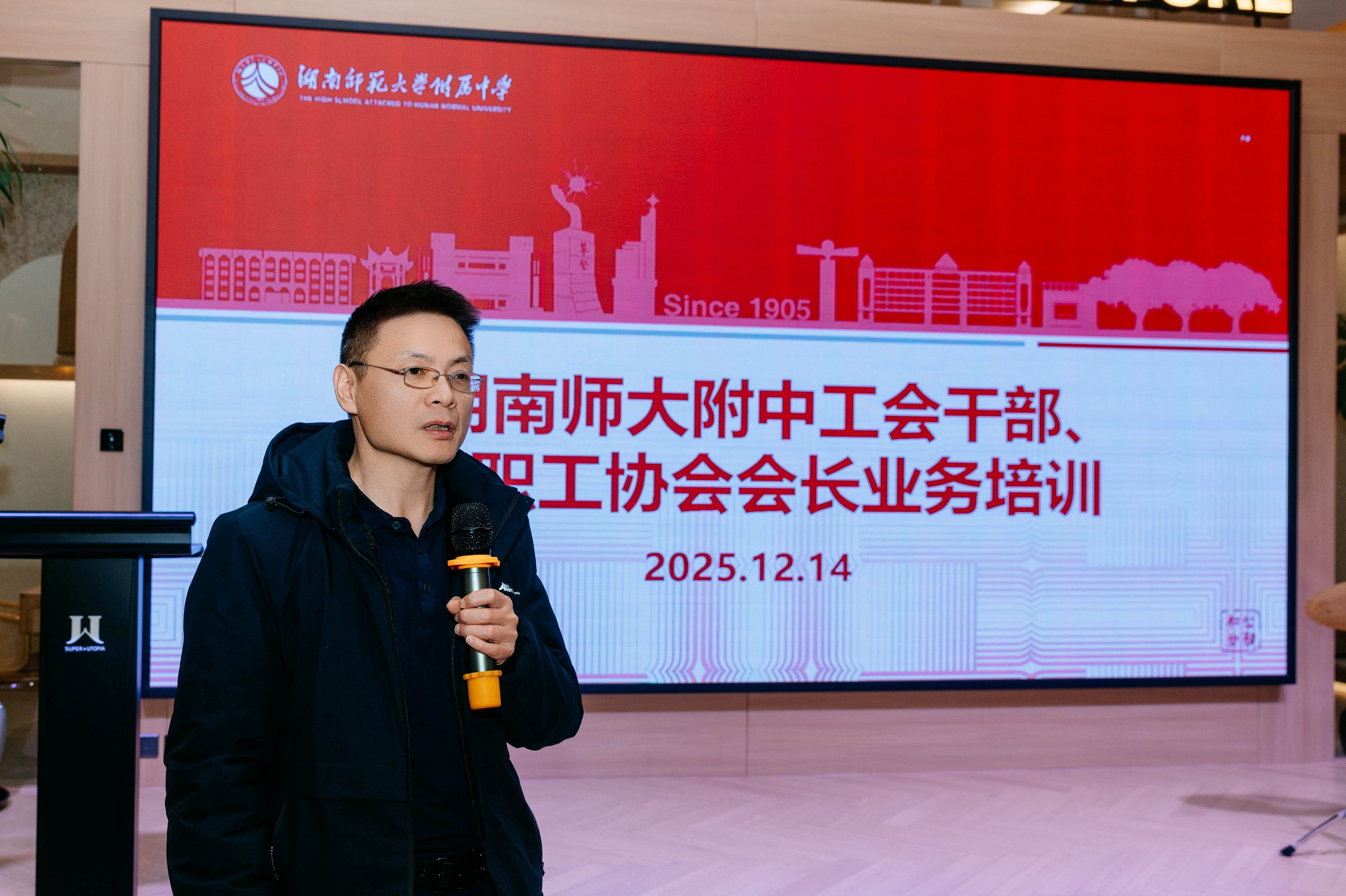 新闻中心 附中新闻 通知公告 最新动态 教育视点 集团学校新闻联播 媒体附中 工作安排 微信附中 我校举办工会干部专题培训 聚焦能力提升与服务创新 发布:管理员 来源:未知 日期:2025-12-16 人气:分享到: 为加强工会组织建设,提升工会干部业务能力与服务水平,我校于12月14日组织开展了工会工作专题培训活动。全体工会干部及各教职工协会会长参加了本次培训。培训由工会副主席候选人苏晓玲主持。 培训历时一天。工会经审委员会主任、财务资产处主任邓刚就工会经费的使用规范进行了专项讲解,通过制度解读与案例分析,进一步明确了经费管理要求,强调了规范使用的重要性。随后,各工会组长依次进行了本学期工作回顾,并就下一步联欢活动策划进行了交流和讨论。培训的第二阶段,教职工协会会长们各显身手,展示才艺与特长,带领与会人员领略了协会活动的特色与魅力。整个过程紧凑有序,生动活泼,达到了总结工作、交流思路的预期效果。 副校长、工会主席候选人许小平作总结讲话。他强调了工会工作的政治方向,指出必须坚持党对工会工作的全面领导,紧紧围绕学校立德树人根本任务,筑牢思想根基。同时,他要求全体工会干部不断锤炼专业本领,深入学习工会理论和工作方法,提升沟通协调能力。许主席还要求工会干部们始终坚持以教职工为中心的工作导向,既要扎实做好传统服务保障,主动关注并回应教职工的新需求、新期待,深入群体,切实为教职工办实事、解难题。 本次培训内容务实、重点突出,不仅强化了工会干部的规范意识与履职能力,也明确了下一阶段的工作重点与发展方向。与会人员纷纷表示,将以此次培训为契机,将学习成果转化为服务教职工的实际行动,共同推动学校工会工作再上新台阶。 上一篇:我校香港校友会2025年年会成功举办 下一篇:我校“校友回湘”工作获省教育厅高度肯定 通知公告 更多 关于征集湖南师大附中“十五五” 湖南师范大学附属中学2025年校门 湖南师范大学附属中学2025年零星 湖南师大附中2026年教师招聘(第 关于开展2024-2025学年度科研成果评 湖南师大附中2026年教师招聘(第 最新动态 更多