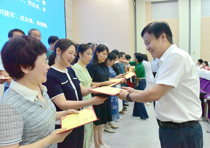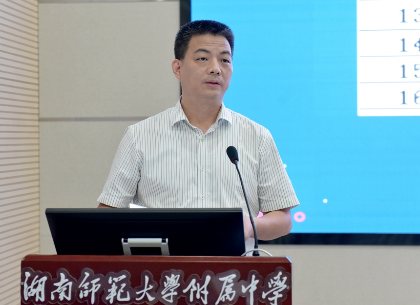 黄月初作总结发言。他强调了师徒结对的重要意义,指出了新学年度学校青蓝工程建设类型丰富、任务艰巨等突出特征,强调师傅们要注重精神引领、徒弟们要敢于超越。他特别指出,青年教师是学校的脊梁和希望,必须志存高远,需有捕捉敏感的能耐、教育改革的锐气、奋进争先的姿态和优良作风的定力,积极投身研究型中学建设洪流,争做富于情怀、勤于学习、长于实践、崇尚学术的研究型教师。