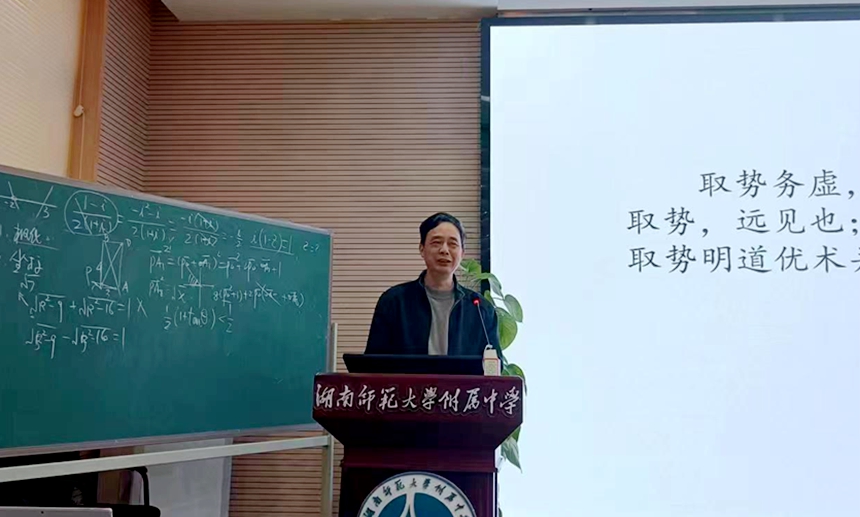 湖南师大附中副校长苏建祥到会致辞,代表学校对曹凤山教授和参加研修活动的老师们表示了诚挚的欢迎和衷心的感谢,对本次研修活动的策划与组织给予了充分肯定。