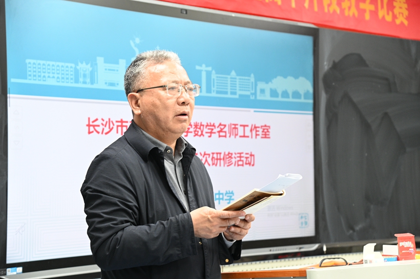 长沙市一中城南中学副校长周志勇致辞。他对名师工作室成员的到来致以热烈的欢迎,对赵优良名师工作室的专业引领表示衷心的感谢。周校长介绍了城南中学办学特色和办学成绩,预祝片段教学比赛取得圆满成功。