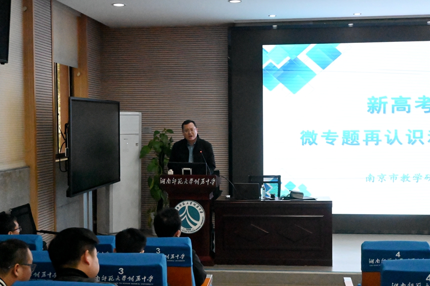3月18日长沙市赵优良中学数学名师工作室与湖南师大附中数学教研组联合研修活动在湖南师大附中举行。南京市教学研究室高中数学教研员龙艳文、湖南师大附中副校长李智敏、湖南师大附中全体数学教师、长沙市博纳二附中数学教师和赵优良中学数学名师工作室高中学段老师参加了本次活动。活动由湖南师大附中数学教研组长汤礼达主持。