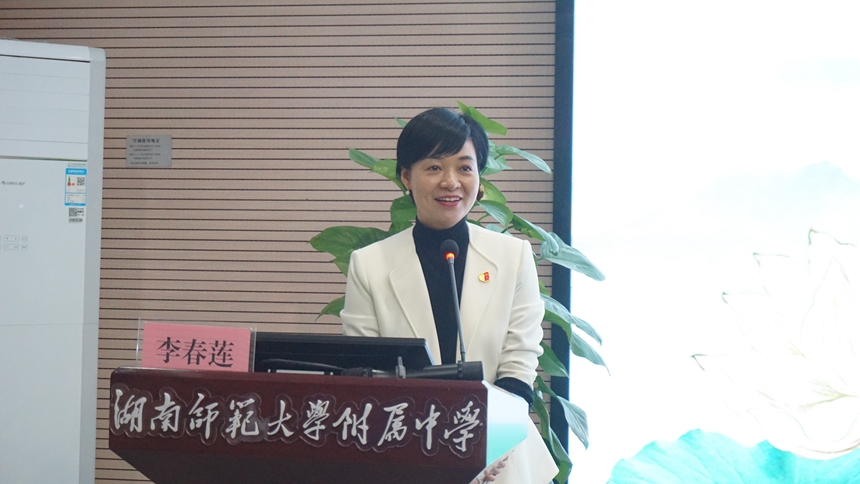 第二板块为文化交流。在学校办公室主任莫晖引领和解说下,延寿瑶族乡中学团队参观了校园,感受了学校丰富而深厚的校园文化。湖南师大派驻附属中学纪检书记李春莲作了《清廉校园建设进行时》的专题讲座,全面介绍了学校思想文化建设特别是红色文化渗透方面的特色和经验。数学教研组组长谢美丽作了《实力·研究·和谐·品位》的经验分享,以数学教研组团队为例介绍了学校的教研文化。