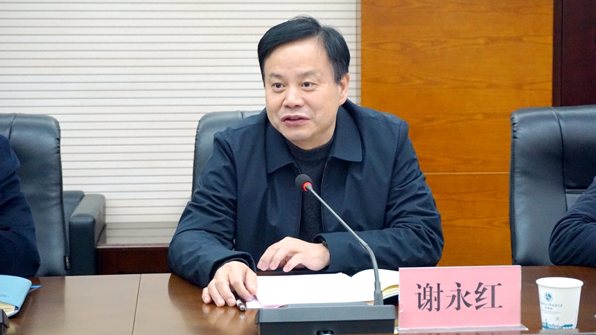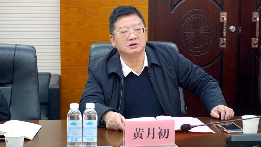 黄月初致欢迎辞。他对湖南省中小学教师发展中心领导来校开展调研活动表示热烈欢迎,对省国培办多年来给予湖南师大附中的关心支持表示衷心感谢。