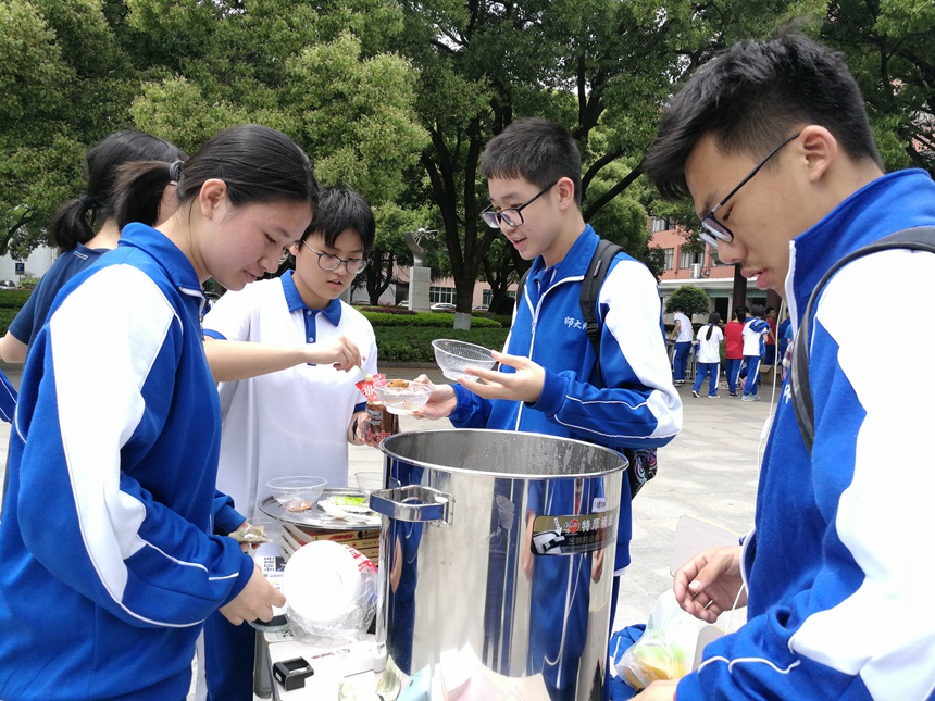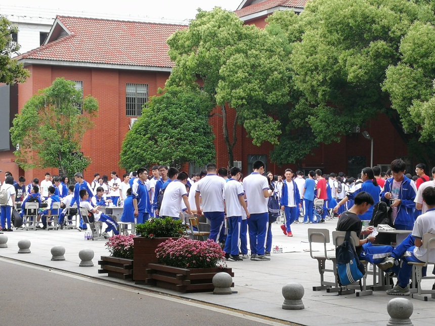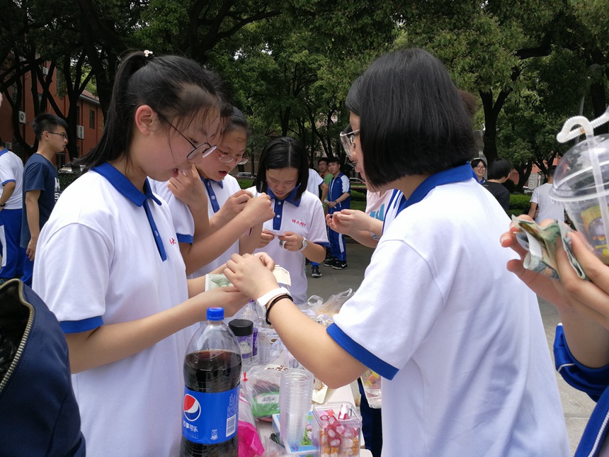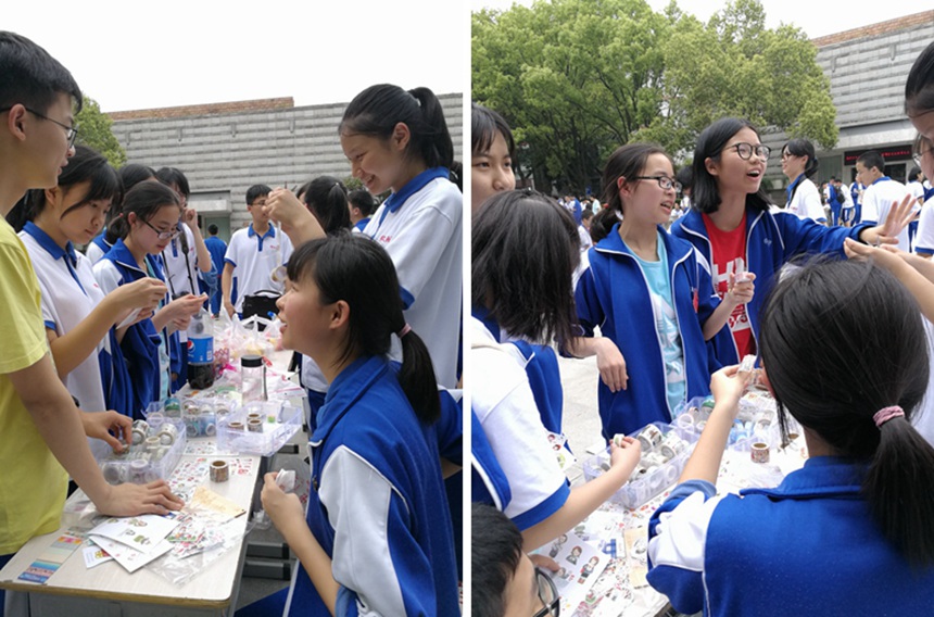 上午最后一节课下课铃刚刚响过,各班就都有序地组织了相关人员进行活动布置。有的同学忙上忙下地搬桌子搬椅子,有的同学认真布置摊位清点商品,还有的同学在广益楼门口分发传单。经过一番准备,跳蚤市场闪亮登场。各个班级的同学们都发挥出了他们的聪明才智,团结协作,分工明确,有人负责收账记账,有人负责吆喝招徕顾客,有人负责游场进行宣传。成套的书籍杂志、自制的小吃和各色各样零食、水果拼盘、精致漂亮的书签明信片、丰富多样的学习文具……吸引了不少同学前来购买,既为自己取得所需,也能充分地保证资源得到最大化的利用。放眼一望,攀登广场,人头攒动,热闹非凡。