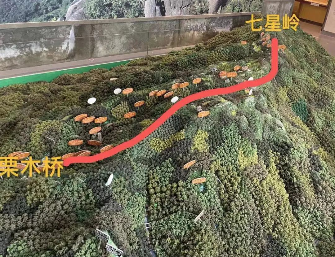 本次考察路线如下图:大围山最高峰七星岭向西到栗木桥。